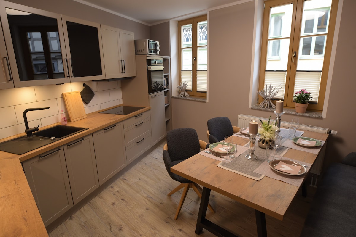 Historischen Fachwerkhaus aus dem Jahr 1648 mitten in der historischen Altstadt von Halberstadt. Das liebevoll sanierte Ferienhaus verbindet den Charme vergangenen Jahrhunderte mit modernem Komfort. Mit viel Liebe zum Detail eingerichtet,bietet es eine gemütliche und besondere Mischung aus historischem Flair und moderner Austattung- ideal für einen entspannten Aufenthalt in einzigartigem Ambiente.