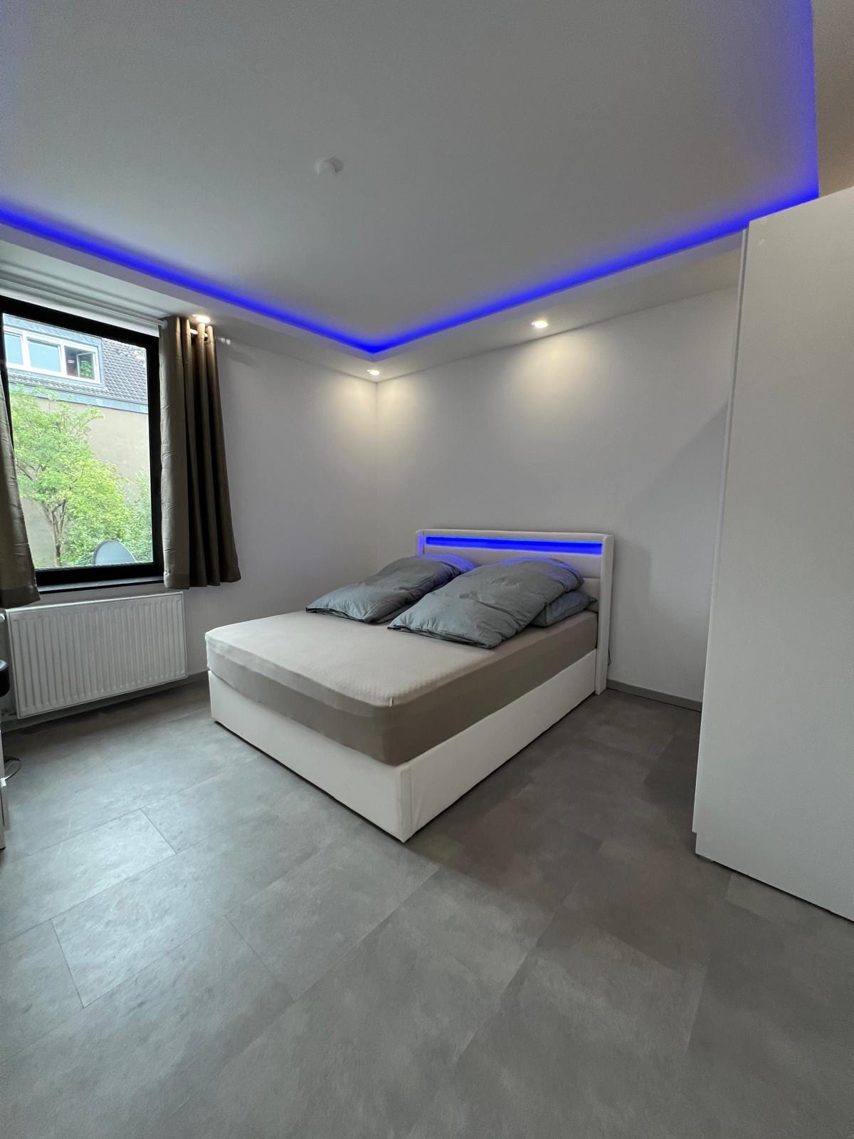 Schönes 1-Zimmer Apartment (Erdgeschoss) im Altbau mit separater Wohnküche und hellem modernem Duschbad mit Fenster. Das Zimmer verfügt über ein Doppelbett (1,80m), TV und kostenloses W-LAN. Handtücher werden wöchentlich gewechselt, Bettwäsche 14-tägig. Im Hof gibt es eine Sitzecke (für Raucher). Kostenlose öffentliche Parkplätze gibt es an den umliegenden Straßen. Gute öffentliche Verkehrsanbindung (Busse, 2,5 km bis zum Neusser Bahnhof), Einkaufsmöglichkeiten und Waschsalon in der Nähe.