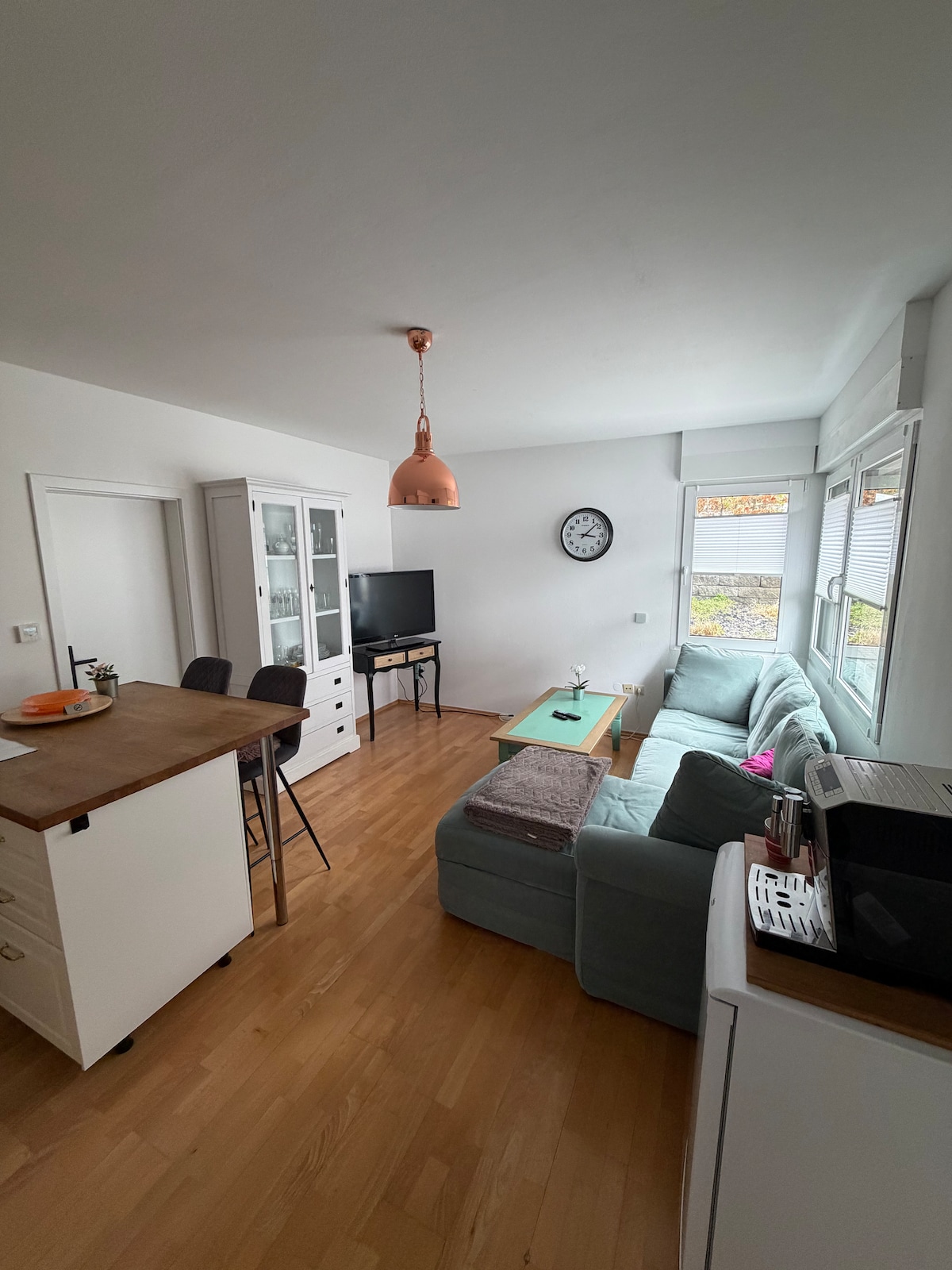 Gemütlich und liebevoll eingerichtetes Apartment im Grünen mit Wallbox. Das 36 qm große Apartment befindet sich in einem 2 Familienhaus in dem wir und eine Tochter mit Kind wohnen. Das Badezimmer hat Dusche und WC, sowie eine Waschmaschine und einen Wäscheschrank. Der Wohnraum ist mit der Schlafecke ( ein Doppelbett) verbunden, optisch durch ein Sideboard mit Fernseher getrennt. Die Küche enthält alle Küchengeräte wie Spülmaschine, Herd, Mikrowelle, Kaffeemaschine und weiteres Zubehör.