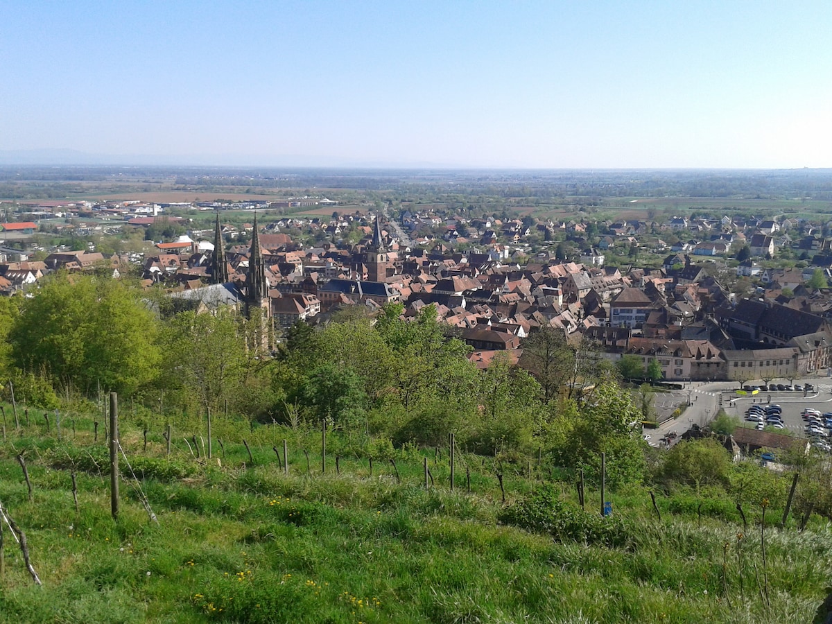 La ville de Barr est sur la route des vins à mi-chemin entre Strasbourg et Colmar. Vous logerez en rez de jardin avec accès direct à tout le jardin. Dégustation chez nos vignerons, trail dans nos forêts au départ de la maison, visite des marchés de Noël, musée du pain d'épices, villages typiques alsaciens....