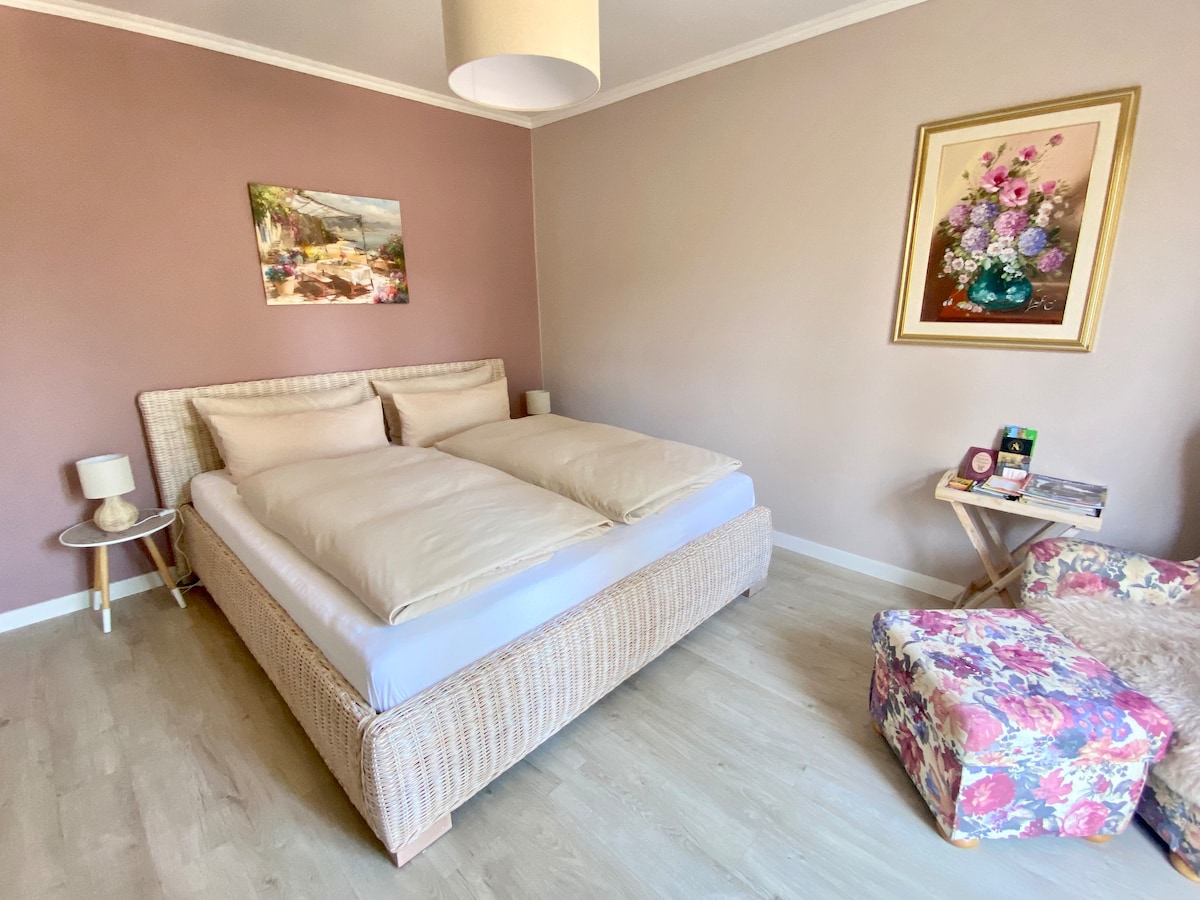 Offene Dachgeschosswohnung mit viel Holz, Licht und weitem Blick ins Grüne. Ideal für alle, die Ruhe schätzen – egal ob allein oder gemeinsam. Großzügige, hochwertig ausgestattete Küche, sonniger Balkon, stabiles WLAN. Die Wohnung ist Teil meines Zuhauses – persönlich, nicht perfekt. Vorräte dürfen achtsam mitgenutzt werden. Ein Ort zum Ankommen – und zum Innehalten, bevor es weitergeht.