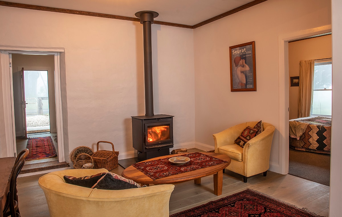 Cozy Cottage is a lovingly restored original settlers cottage. This tasteful restoration is in harmony with the homely, snug feel of the original. The antiques blend with the mod cons and luxuries of the well equipped kitchen (of course WiFi, TV, mobile reception are available) The cottage has soul and is a perfect place to getaway, relax and unwind, be that in front of a warm soothing fire or soaking in the tranquil pastoral views on the expansive deck whilst enjoying a BBQ, wine or coffee