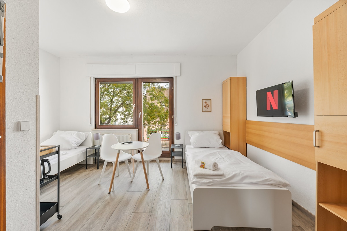 Die Einliegerwohnung ist direkt bei uns im Einfamilienhaus und verfügt über einen eigenen Eingang. Sie ist hell und durch den geölten Holzboden sehr charmant. Wer sich über einen Blick in den Garten, das Herumschleichen der Katze und das Gackern von 3 Hühnern genauso freut wie wir, dann bist Du bei uns richtig. Wir als Familie, mit 3 älteren Kids, freuen uns auf freundliche Begegnungen und möchten Euch den Aufenthalt in Heilbronn angenehm gestalten.