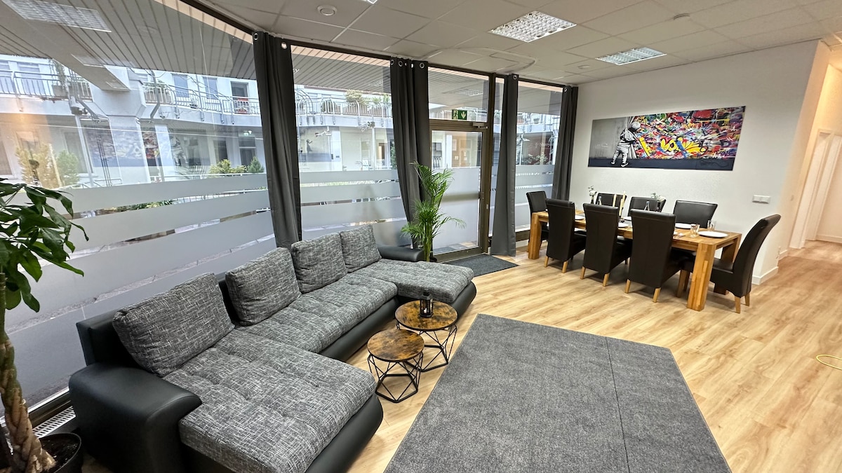 it's a really cosy, luminous apartment. The neighborhood is quiet. There is also a sauna in the apartment, which is for private use only for our guests. You will find some supplies for breakfast. It's a very comfortable place to stay for those who want to be near Frankfurt international airport as well as the city center of Frankfurt which is 15-20 minutes away by car.