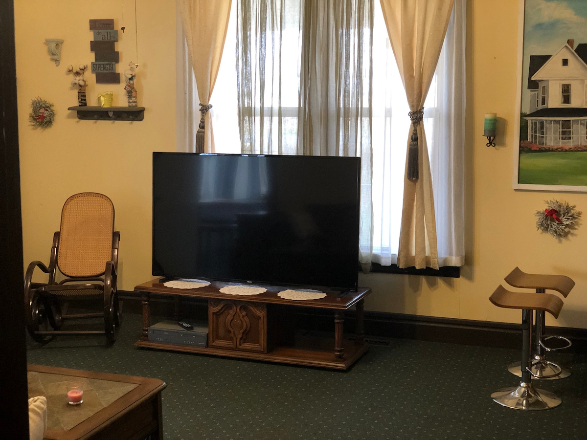 Completely refurbished and modernized, Rosie's Retreat has 2 bedrooms each with a queen bed, large closet, and fireplace. There is additional sleeping space for 2 on the queen sectional/sofa bed and 1-2 more on the futon in the dressing room! Rosie's has 1 full bathroom, but an additional spacious dressing room with lots of mirrors and more. Rosie's has a full kitchen with everything you need for cooking. There is a grill, large fire pit, and plenty of comfy Adirondack chairs for hanging out!
