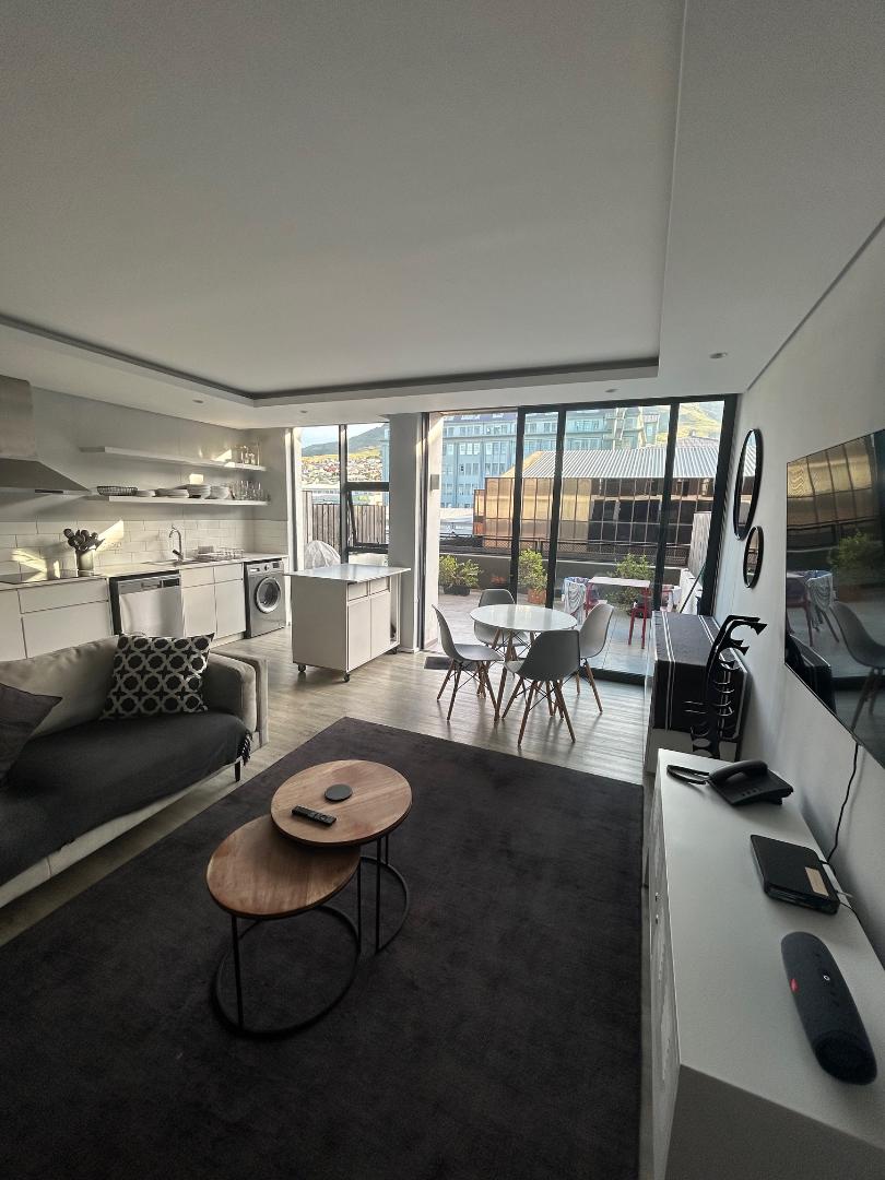 Welcome to our brand new designer home where where practical meets beauty and stylish taste is the order of the day. Throw your curtains open in the morning to enjoy the Table Mountain views from your ample balcony. The industrial feel and high ceilings give a gallery feel. If the moment grabs you head up to the roof top pool deck and entertainment area where you can enjoy crimson pink sunsets and 360 degree views of Cape Town including the Atlantic Ocean. *Zero power cuts in this building.