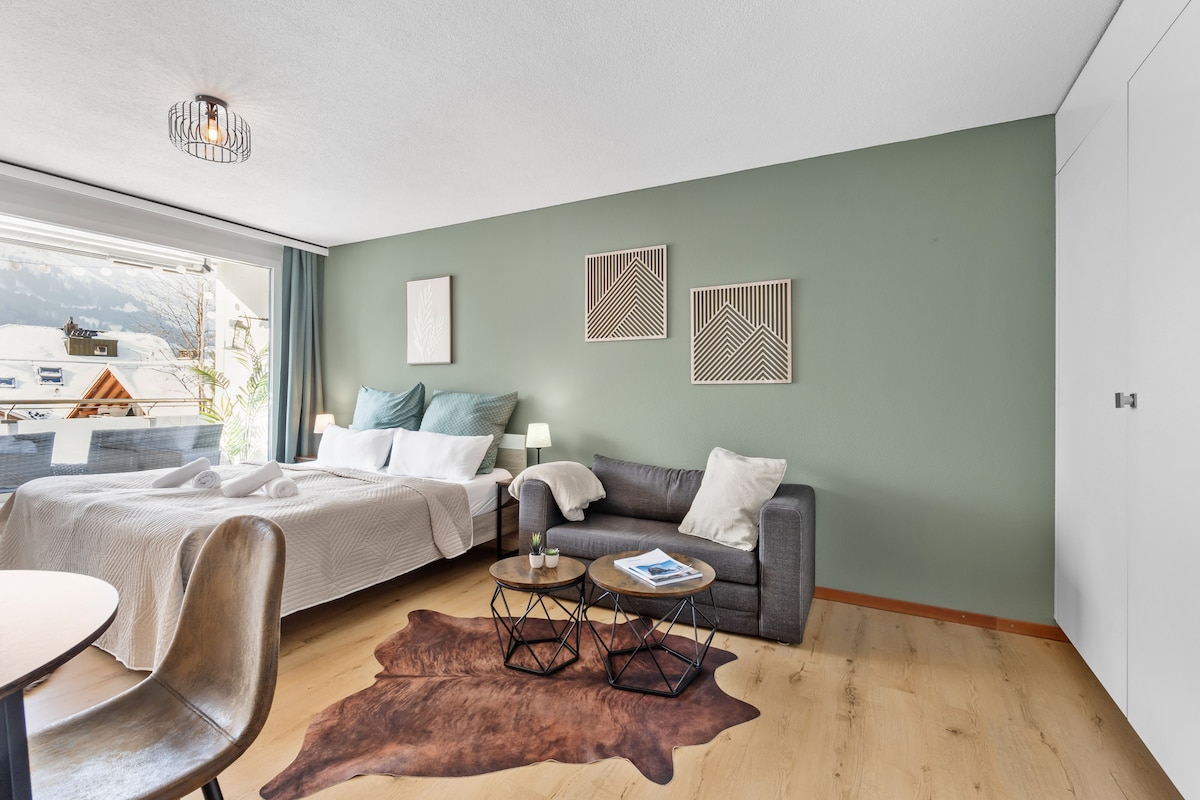 Willkommen bei Greenspot Apartments - Cozy Living, und diesem lichtdurchflutetem Studio mit atemberaubendem Blick auf den Titlis, mit gratis Parktplatz, das dir für einen tollen Aufenthalt in Engelberg alles bietet: -einfache Anreise, Tiefgaragen-Parkplatz -24h Check-in -gut ausgestattete Küche -King-Bett 180x200 -Schlafsofa -Kinderbett (auf Wunsch) -Wifi & Smart-TV -Nespresso-Kaffee & Tee -Waschmaschine -5min zur Piste -2min vom Bahnhof entfernt -direkt im Zentrum