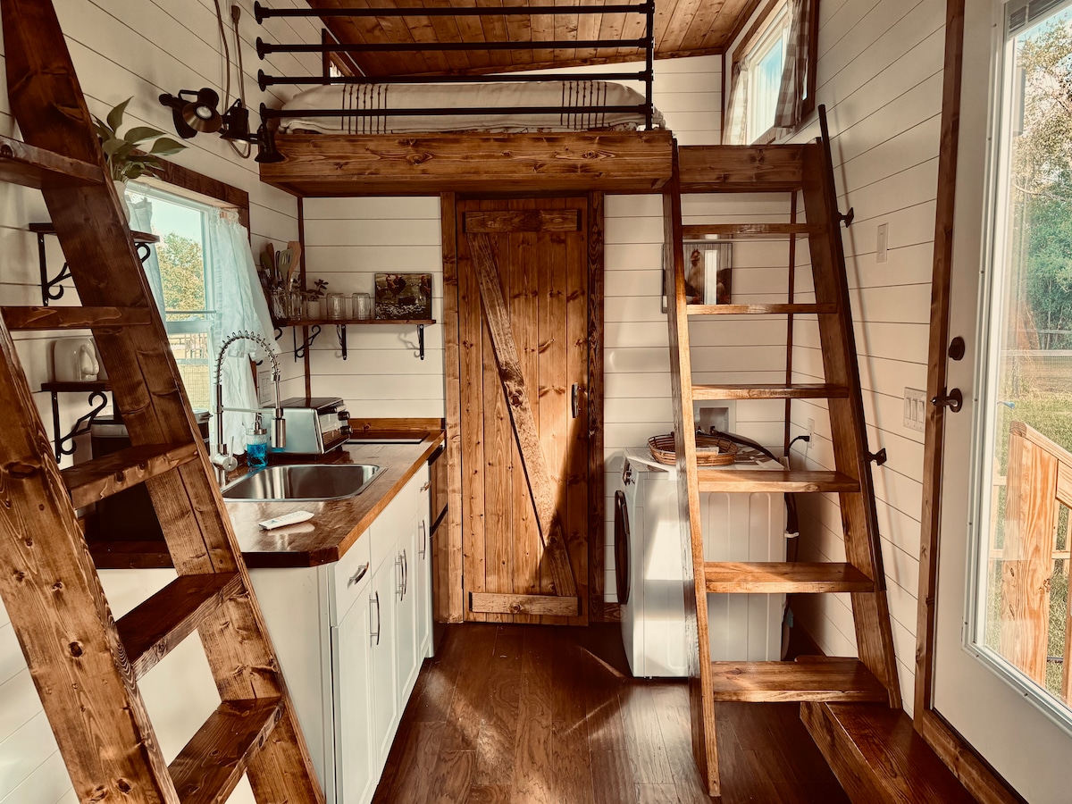 Enjoy the retreat of this tiny home tucked away in the back of a 50-acre gated equestrian farm in north Ocala. Couples have access to a private outdoor shower, can walk among the peaceful garden trail, and enjoy the presence of resident horses, goats, and farm cats. Guests will be greeted with a welcome packet containing organic, natural products made right here on the farm! Whether a quick weekend trip or an extended stay, book your farm retreat today!