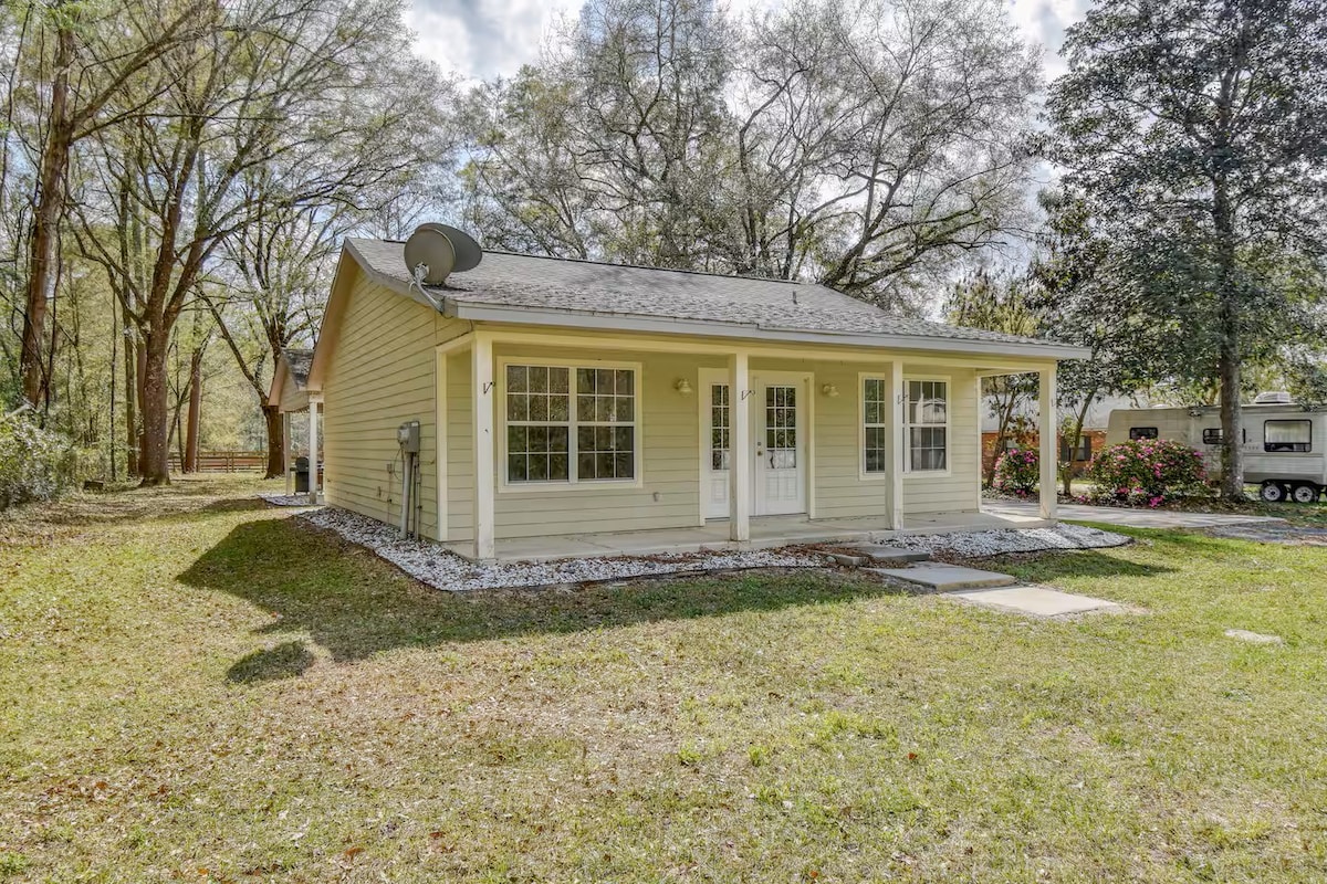 Cozy cottage with “Old Florida Rustic Charm”. Home has a 3 day min stay w/firm cancel policy. Nestled in wooded setting, close to town & shopping, restaurants & I-75. High speed Star-link internet. Queen bed and bunk(w/full/twin beds), full kitchen, washer&dryer. Accessed by well maintained non-paved driveway (1/10 mi) with night-time reflectors, & motion light on porch. Two pets max (tell host). WEC & FAST 5 mi West. Host pays guest airbnb fees. Guest pays occupancy tax & $50 cleaning fee.