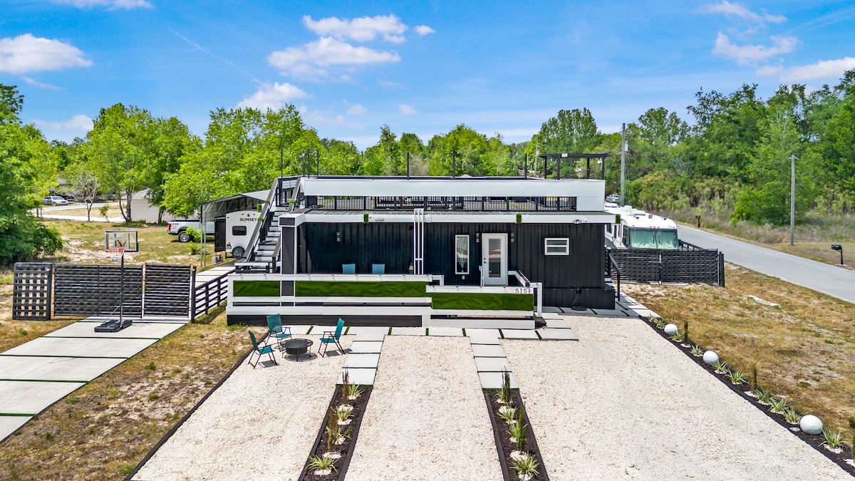 Escape to this cozy tiny cottage with king-size bed, full bath, kitchenette, and pet-friendly comfort. Relax under starry skies, enjoy farm views, and pick fresh vegetables or fruit from the garden and trees when in season. Just 15 min to The Villages, 20 min to Wildwood, 35 min to Ocala, 1 hr to Orlando, minutes from Brownwood live music, and quick access to the Turnpike & I-75. Perfect for a romantic, stylish getaway close to springs, trails, and local attractions.