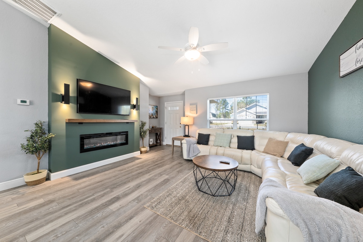 Welcome to your Ocala retreat - a peaceful space for families, friends & pups to relax, play, and reconnect! - Sleeps 9 | 3 bedrooms | 5 beds | 2 baths - Private outdoor pool (not heated) - Detached game room w/ pool table, arcade games - Screened lanai, fire pit, BBQ grill: gas & outdoor dining - Fully equipped kitchen, wifi & dedicated workspace - Pet-friendly & family-ready w/ baby gear on request