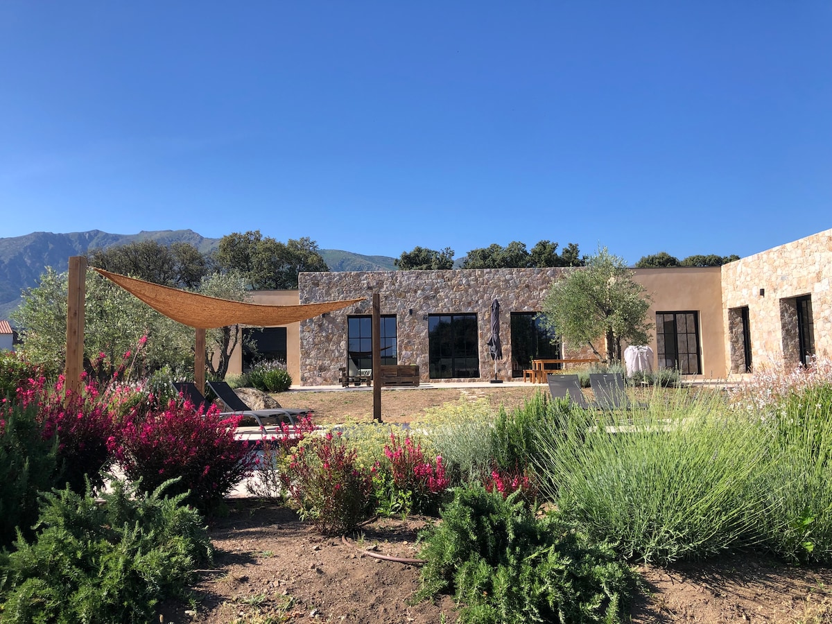 La villa peut se résumer en 3 mots : exclusivité, minimalisme, et confort. Bénéficiant d’un panorama spectaculaire sur la vallée du Reginu et ses montagnes, elle offre un cadre propice à la contemplation et au repos. Grâce à sa situation privilégiée, la villa est un équilibre parfait entre isolement et activités touristiques. Proche d’Ile Rousse et des plus belles plages de Corse , c’est aussi un point de départ pour des balades, et une position idéale pour visiter les villages alentours.