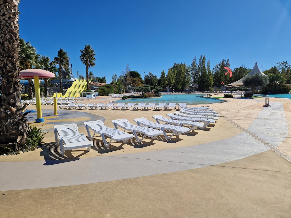 Oubliez vos soucis dans ce logement spacieux et serein ! Situé dans une impasse dans un quartier très privilégié du camping Siblu Les Sables du Midi **** où tout est accessible à pieds, venez passer des vacances inoubliables au bord de la Méditerranée ! Plage aménagée, restos les pieds dans le sable, port, rue piétonne de Valras avec ses boutiques, ses petits commerces et ses restaurants, grandes surfaces, centre village de Sérignan, marchés, animations, fêtes traditionnelles, férias, concerts…