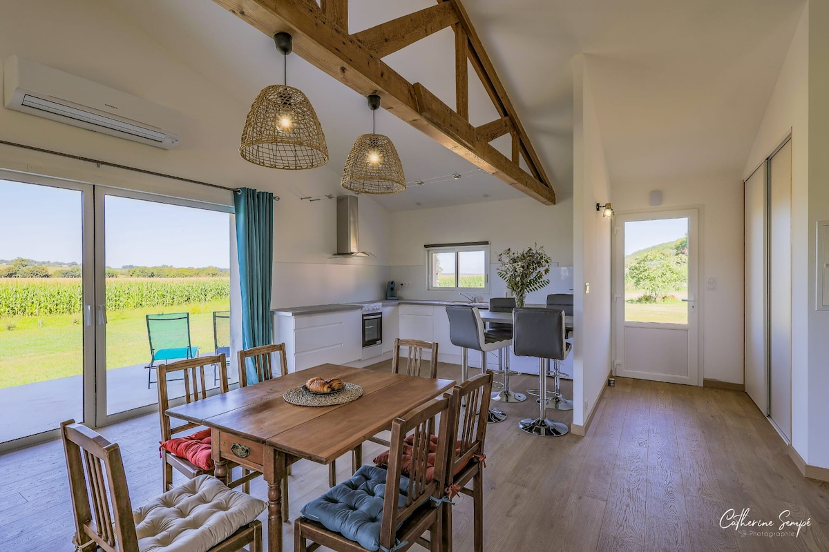 Bungalow privé de 16 m2 au calme avec vue imprenable . Proche de St Emilion ( 12kms) - de Bordeaux 37 kms - Idéal pour une personne seule ou un couple sans enfants - Private bungalow (16 square meters) in quiet place with stunning views. Close to St Emilion (12kms) - Bordeaux 37kms - Perfect for a single person or a couple without children -