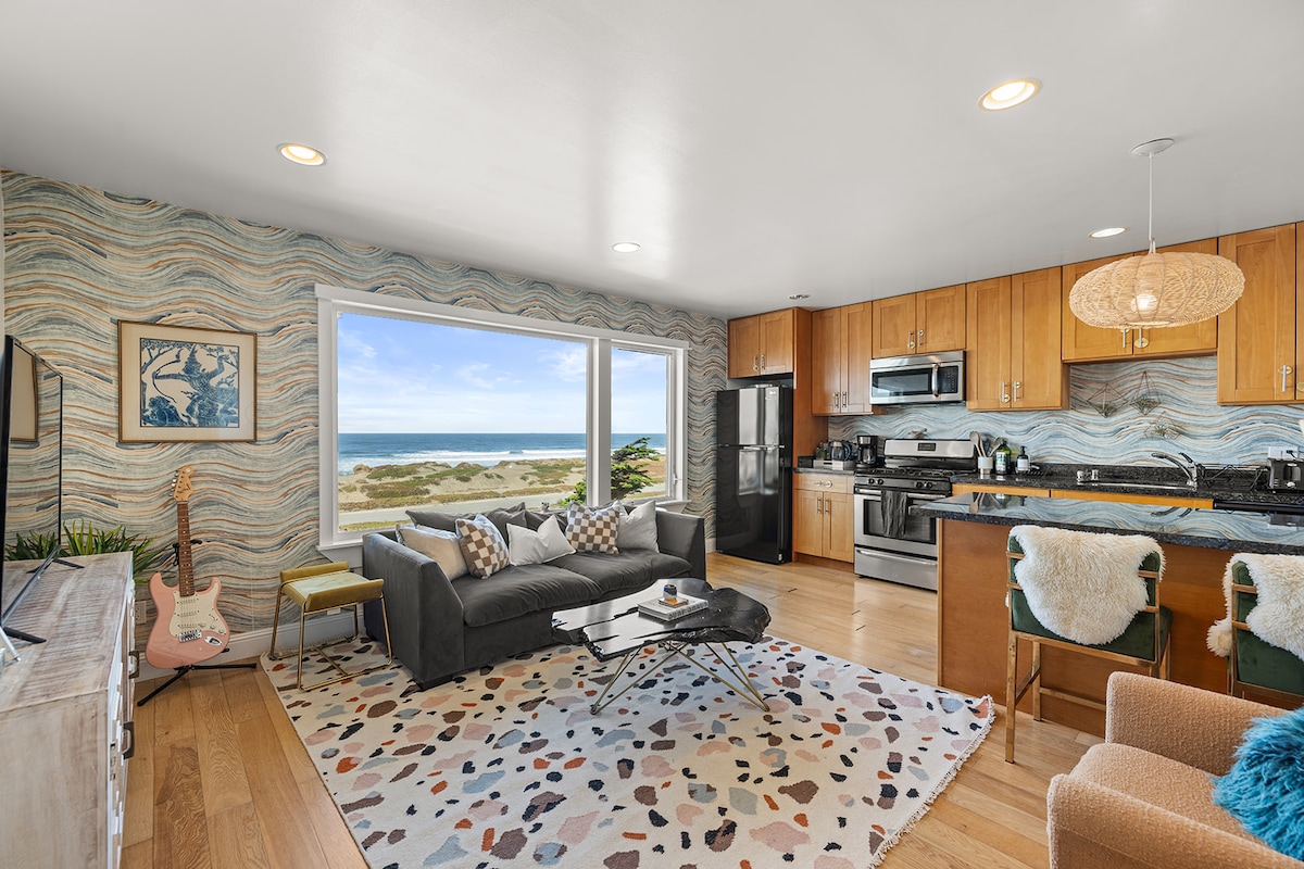Unwind in style with breathtaking ocean views and golden sunsets at this remodeled 2B1B coastal retreat—just 15 minutes from SFO and San Francisco. Perched on the second floor of a duplex and steps from the beach, it’s ideal for whale watching, surfing, or peaceful seaside strolls. Oversized windows fill the space with natural light and stunning views. Enjoy brand-new smart appliances, stylish furniture, free under-unit parking, and voice-controlled lights and TV for a seamless, relaxing stay.