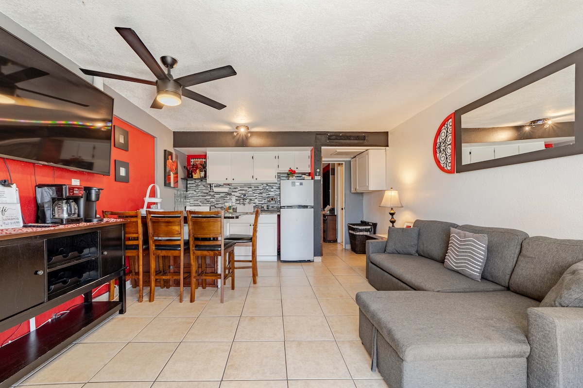 Welcome to our updated and cozy condo by the beach, offering comfort and convenience. Enjoy beachside living with easy access to the ocean, providing the perfect backdrop for a relaxing getaway. While our unit does not boast a direct ocean view, the **proximity** to the beach can't be beat! Note: Our unit is modern and trendy, but the building is old and from the 1960s. We maintain a smoke-free space but there may be residual smoke odor in the hallways due to individuals smoking outside