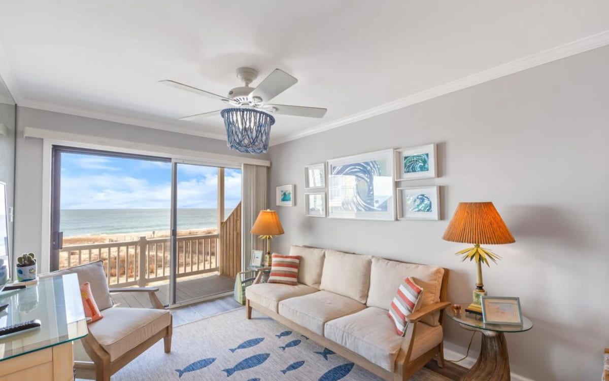 Our beachfront 1-bed, 1.5-bath condo for four offers a spacious living area, fully equipped kitchen with a breakfast bar, and a luxurious bedroom with a king bed, all steps from the beach. Enjoy ocean views from the balcony, stay entertained with an HDTV and Roku, and explore nearby dining and entertainment, leaving your car in the designated parking spot. The condo, recently updated, provides versatile sleeping options, modern amenities, and convenient bathrooms for a comfortable stay