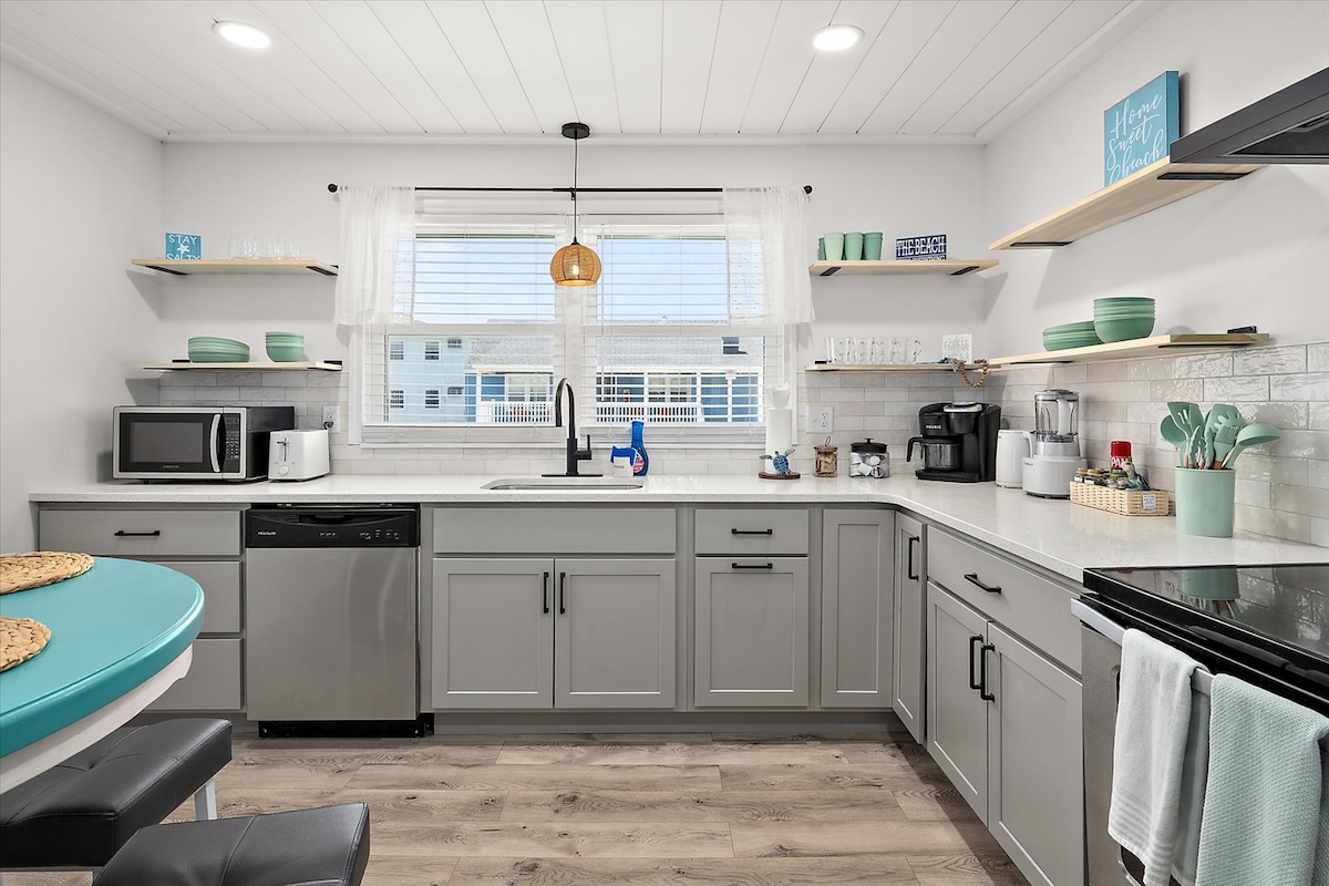 Here's why you'll love it here: 🌊 Perfect Location: 5-minute walk to the beach & Boardwalk. 🛌 Comfort: 2 Full Bathrooms & Smart TVs in every room. 🌅 Sunset Views: A quick 1 minute walk to the bay for beautiful sunsets 🚗 Easy Parking: 2 dedicated spots (rare in OCMD!). Modern 2BR/2BA Ocean City condo. Located perfectly between the ocean & bay, just a short walk to the Boardwalk and beach. Sleeps 6 comfortably with a full kitchen, Smart TVs, and dedicated parking.