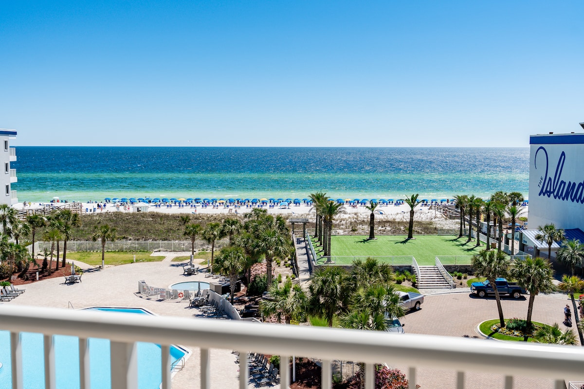 Experience the perfect beach escape in our beautifully renovated beachfront condo on stunning Okaloosa Island. This inviting retreat offers two spacious bedrooms, two modern bathrooms, and a rare oversized balcony—ideal for relaxing while taking in breathtaking Gulf views. Step onto the sugar-white sands and enjoy the emerald-green waters with complimentary beach service, including two chairs and an umbrella, provided from March 1 through October 31.