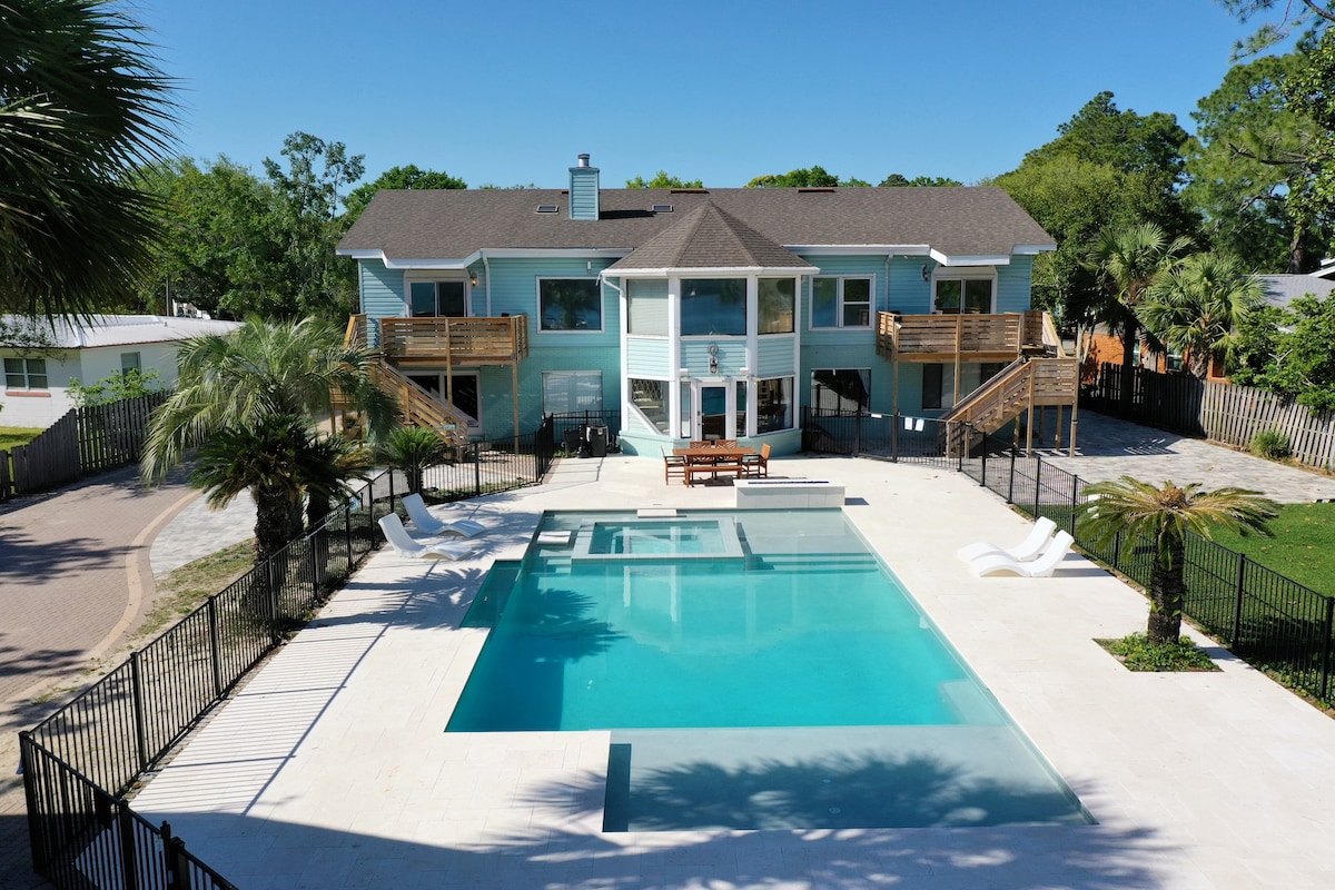 海滨度假屋:恒温泳池、热水浴缸、烧烤架!