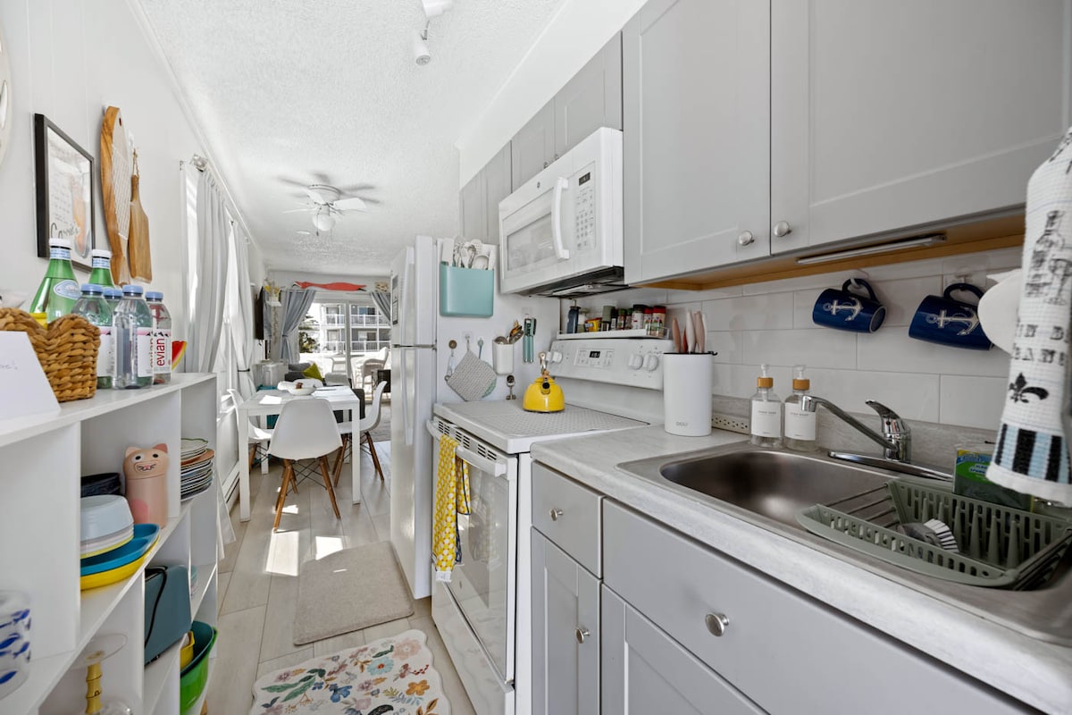 Newly renovated condo!! -Water view. Watch the boat traffic. -Oversized balcony with comfortable seating. -Comfy LoveSac couch. -Walk to boardwalk or beach - 15 minutes. -Walk to Jolly Roger amusement park. -Fish off community dock down below unit. -Close to dining and shopping. -Kitchenette for cooking meals. -Fast Wifi and Streaming TVs. -Fully Stocked Home. Clean linens, towels, toilet paper, paper towels & more!