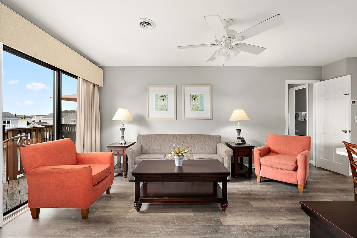 CENTRAL LOCATION! Steps to BEACH & BAY. Escape to your own piece of paradise — completed with all the amenities you deserve. 2 beds made with fresh sheets, towel sets. Outdoor shower. Watch both sunrise & sunset from the SPACIOUS balcony. Walk to restaurants, bars, grocery, carry-outs, pizza, Convention Center, boardwalk tram, mini golf, amusement park, bike rentals & more! Contemporary Elegance • Comfort • Prime Location - Everything you need to relax and enjoy your ideal beach paradise!