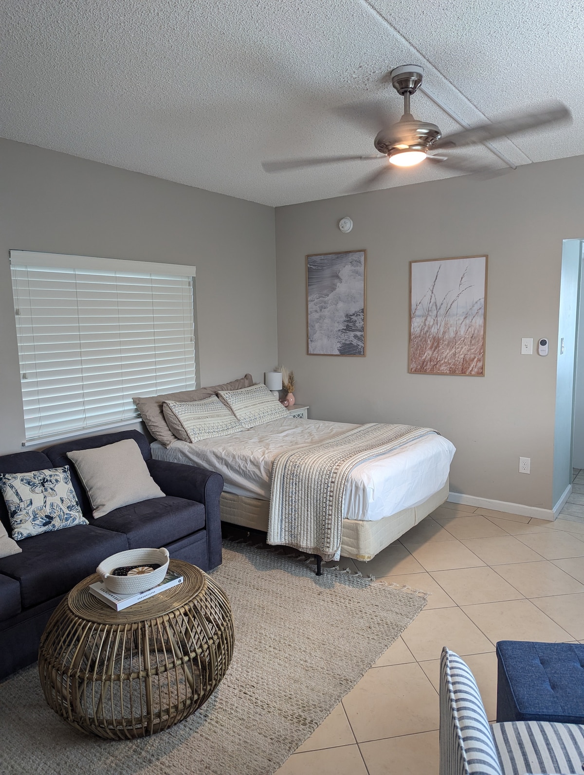 Small condo perfect for 2 people. -Private, stocked with linen, basic toiletries, Smart TV with Netflix, WI-FI, and air conditioner -Extra Perks: 2 beach tags, 2 beach towels, 2 chairs, 1 umbrella, Complimentary coffee. -Unit 302 does not have dedicated parking, but several options are nearby like street parking, parking lots within walking distance, metered parking nearby -Building Amenities: On-site laundry facilities, outdoor shower. Check-in: 4PM Check-out: 11AM