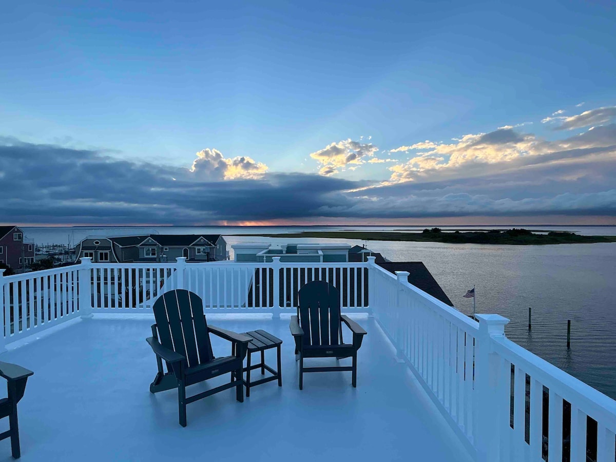 NEW ADDITION/RENOVATION COMPLETE FOR 2023 SEASON. 2nd&3rd floor of BAYFRONT duplex with amazing views & location on quiet street. Enjoy stunning views & breezes from three private decks. Hop in the bay for swimming, kayaking, paddle boarding & the beach is a short 3 blocks. Crab and fish off the bulkhead, relax in the hammock and enjoy evenings roasting marshmallows around the fire pit with the sounds of the bay. Walk to Bay Village and center of Beach Haven.