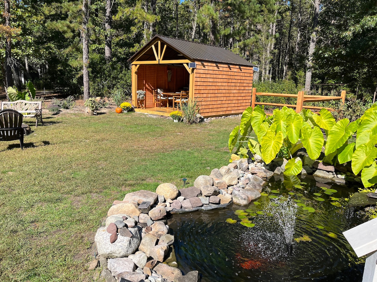 Private apartment suite attached to our house. It has 1 BR. WE ARE NOT ON THE BEACH, but we are very close to Barnegat Bay & Ocean county new jersey coastline. We are 15 miles from seaside heights. 25 miles from long beach island. 4 miles from Cedar Creek & new Berkeley Island County Park. Smithville is 35 min drive. Atlantic city is 45 min drive. It is clean, private, functional, affordable and comfortable suite. HONEY BEES, DOGS, & CHICKENS ON PROPERTY. The animals do make noise.