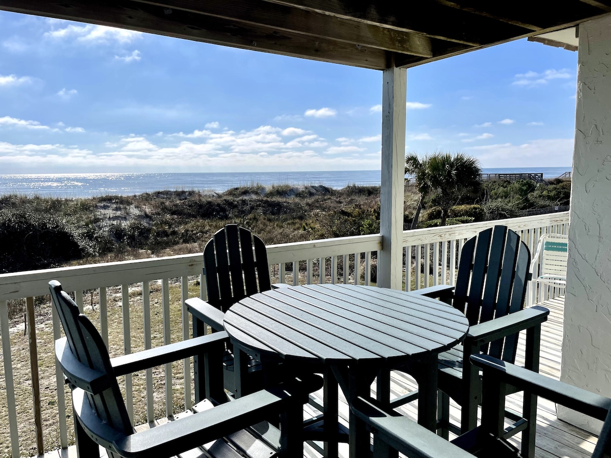 Enjoy the crisp autumn breeze and ocean views from your porch daybed, or curl up with a warm drink and a good book by the fireplace. Perfectly located on one of the Island’s most desirable stretches of sand featuring the only year-round dog-friendly beach! With easy beach access and Pier just steps away, you can soak in the season however you like - a quiet morning stroll, a sunset by the water, or a cozy night in. This peaceful oceanfront Condo blends comfort and charm for your Fall escape.
