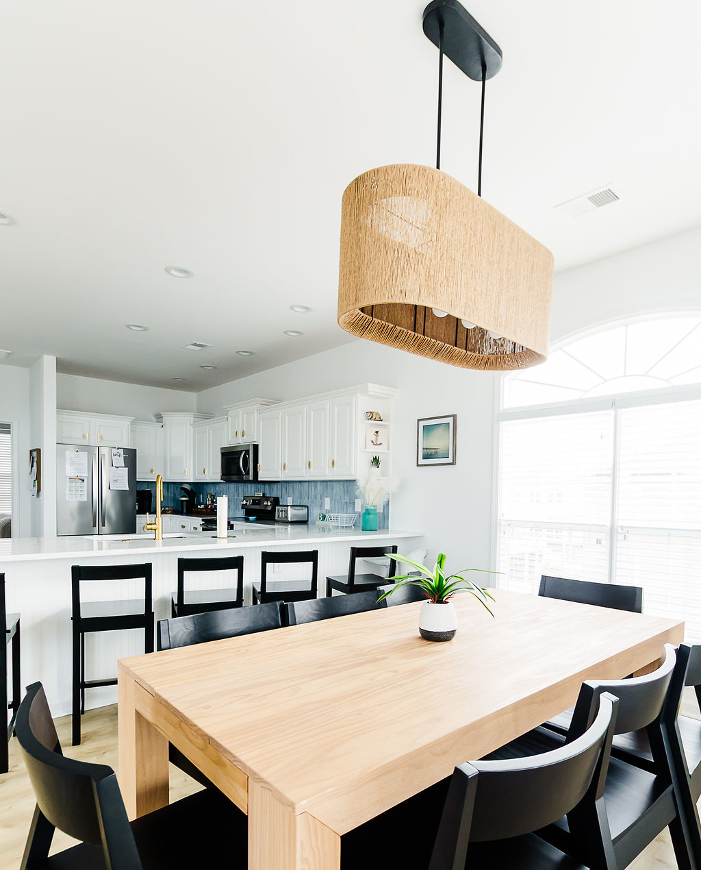 OIB Lovin’ Life – Catch rays from the beautiful open deck upstairs or enjoy shady, relaxing days on the ocean-facing covered deck. Our home is steps from the beach. Picture your days going from our outdoor pool to the ocean and back again. Our home is on the desirable west end of the island. The main floor offers a spacious open living room and kitchen floor plan ideal for family to gather. Dine together comfortably at our dining room table which seats ten and wide kitchen bar which seats six.