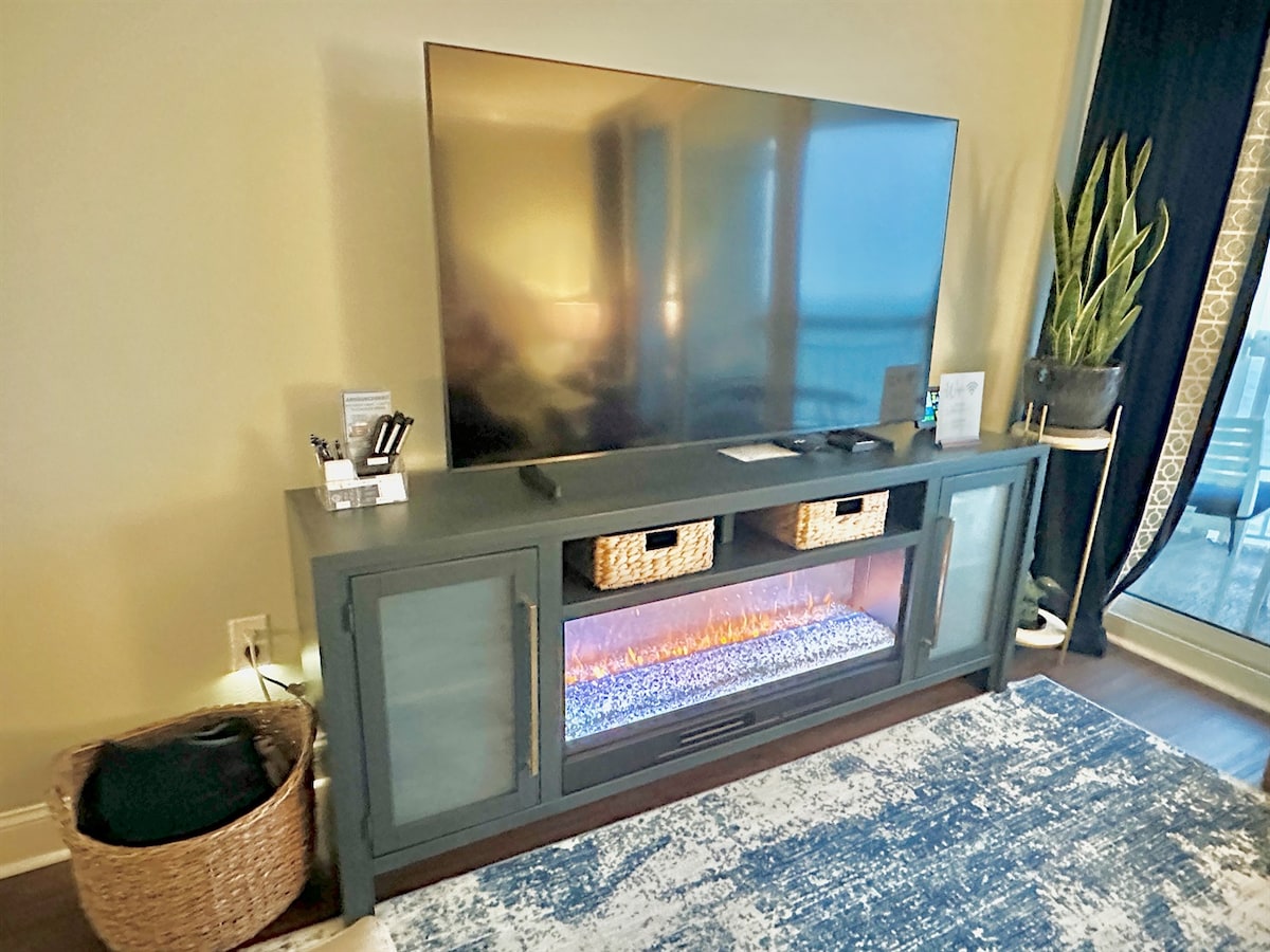 Experience breathtaking ocean and sunset views from our Super Clean, 5-star rated condo on the 8th floor. "OCEAN BLUE" is a spacious 1-bedroom layout with a king size bed, full kitchen, large balcony, smart TVs and a fireplace. Located in a prestigious area of Myrtle Beach known as the Golden Mile, minutes away from restaurants, shopping, and attractions. Book now for the ultimate MB getaway! Washer\dryer located inside the condo. This condo is also available for longer term winter rental.