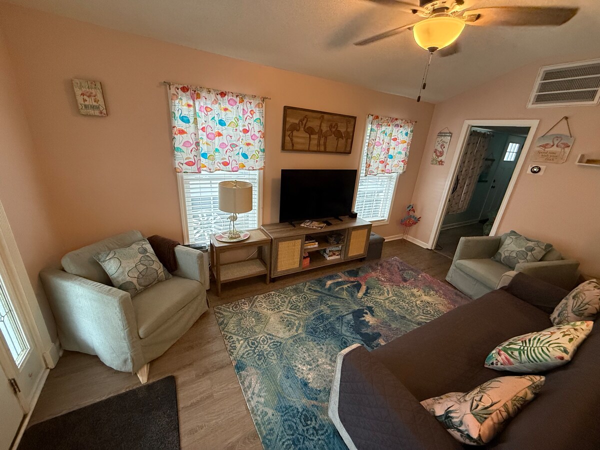Welcome to The Snapper! This bright tiny home in Ocean Lakes is perfect for friends and family. Relax in the spacious outdoor area, gather in the open living room and kitchen, and enjoy full access to Ocean Lakes amazing amenities. Explore the resort with our brand new 4-seater golf cart available for rent during your stay! 🐚 Sleeps up to 8 guests comfortably 🐚 Spacious outdoor entertainment area 🐚 Golf cart available for rent 🐚 Full kitchen for family meals 🐚 Pet friendly!