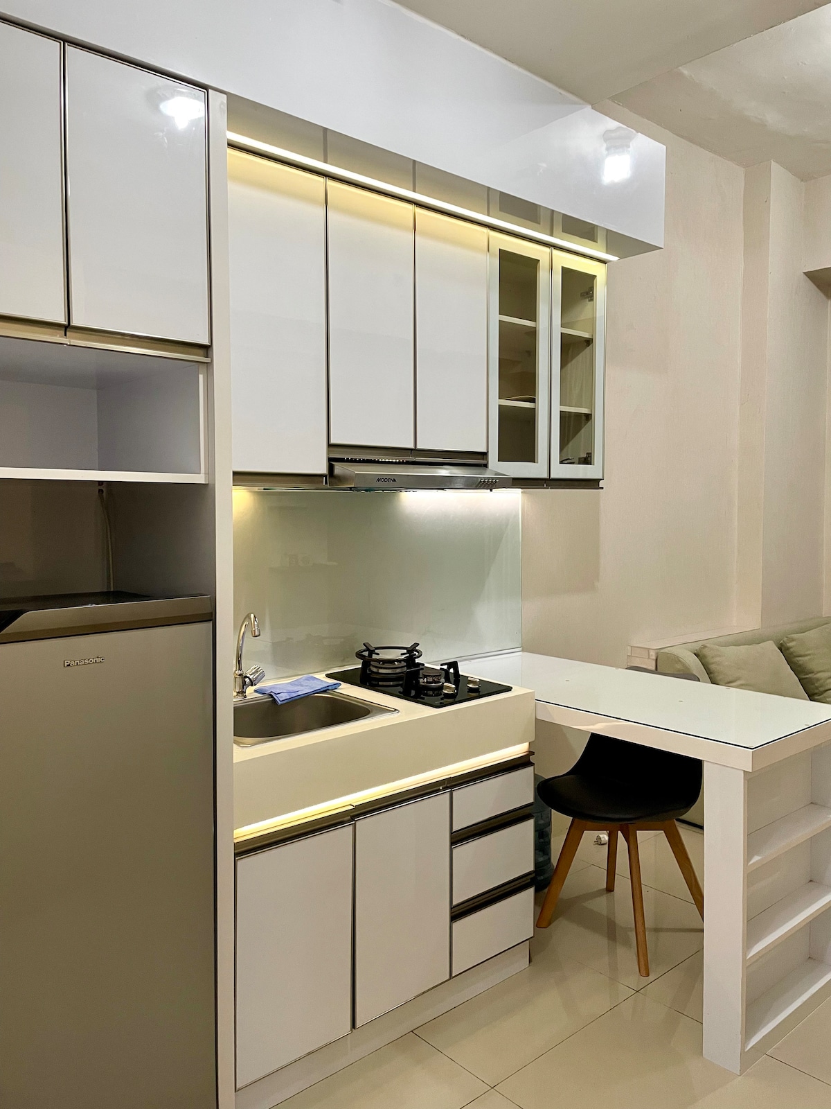 10 minutes to ICE BSD 8 minutes to Aeon Mall 6 minutes to The Breeze BSD Very suitable if you are looking for a premium atmosphere stay! Enjoy 100 Mbps High Speed Internet. There is a comfortable desk, suitable for laptop work / remote working. 40" LED TV is Netflix & YouTube ready Fridge, Mineral Water Dispenser, Microwave available. Canned gas stove is available for light & simple cooking. Small frying pan & small soup pot also available.