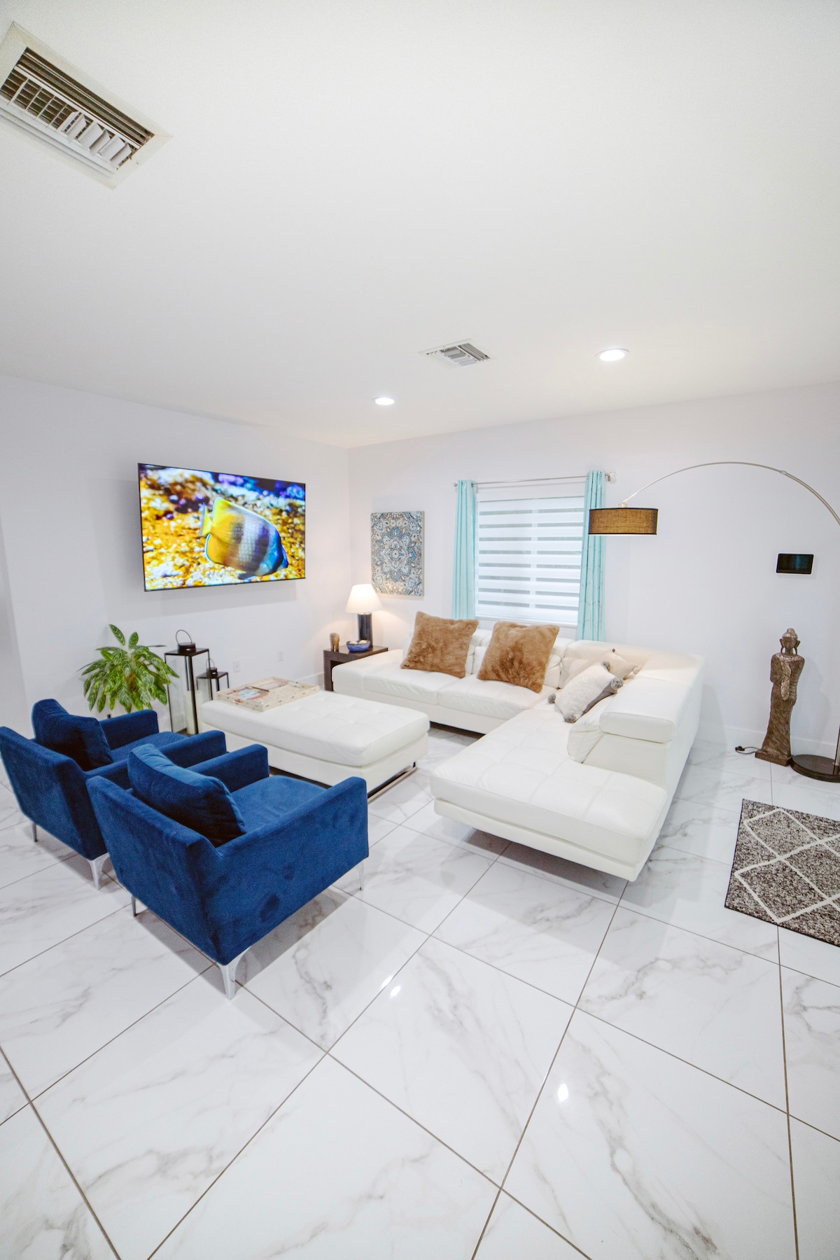 Welcome to our contemporary 1-bedroom, 1.5-bathroom condo in Sunny Isles Beach, Florida, across the street from the beach. Take in breathtaking views from your balcony and unwind while enjoying stunning sunsets. The master bedroom features two luxurious queen-size beds, an elegantly designed en-suite bathroom, and a convenient half bathroom. As our guest, you'll have access to a range of amenities, including Wi-Fi, flat-screen TVs, a dishwasher, pool, tennis court, parking, and a gym.