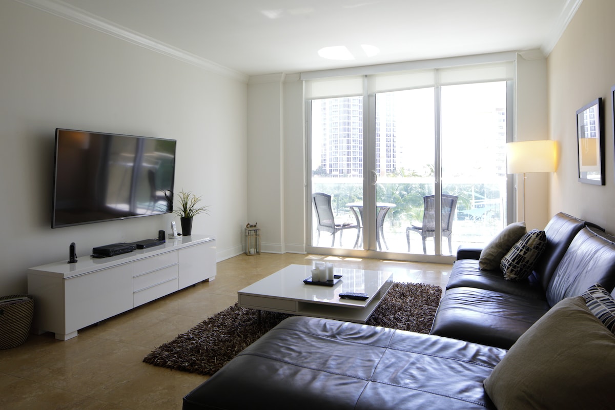 50 Mts walk to the beach!! Beautifully decorated and furnished condo in the heart of Sunny Isles Beach. Walk 2 min to the amazing Beach! Easy access to Aventura Mall, just cross the bridge. Relax, bring your suitcase to enjoy! 1 bedroom, 1.5 bathroom, sleeps 4 2 full beds in bedroom 1 queen sofa bed in living room 2 flat screen tv + cable tv + internet ASSIGNED PARKING INCLUDED A prepaid check in Fee of $50 Host will request this payment prior to arrival. Enjoy Your Wonderful Vacation!!