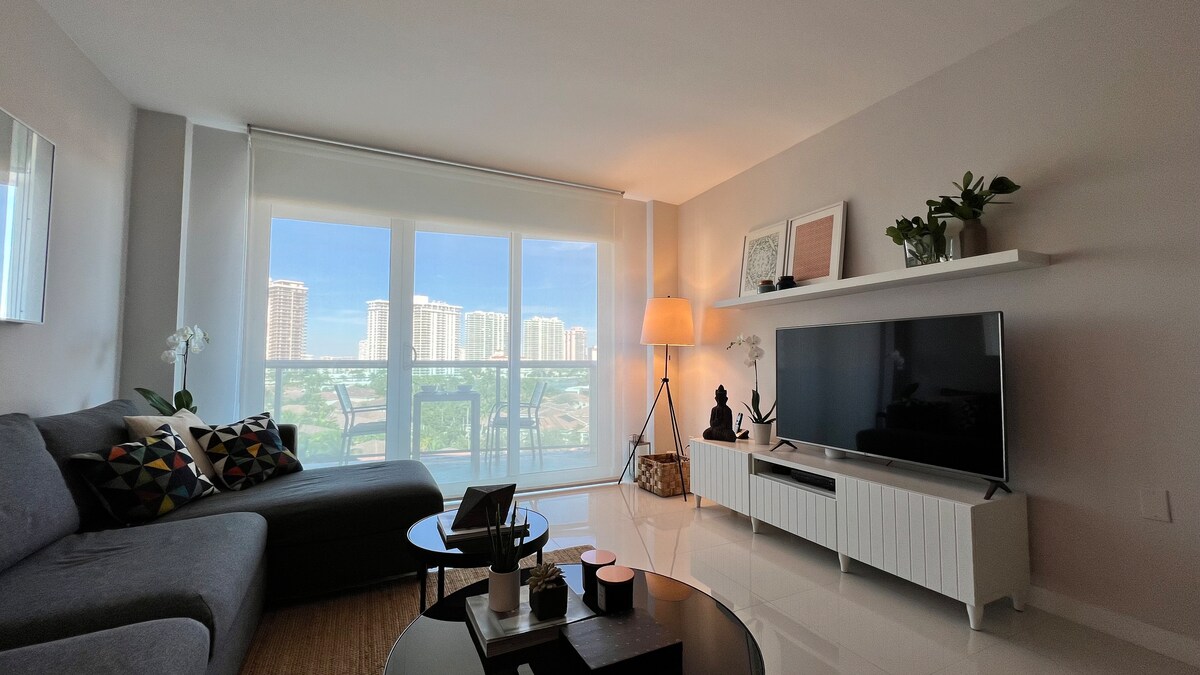 Bienvenidos a nuestro lindo apartamento en Sunny Isles Beach situado a solo una cuadra de la playa. El balcon de la unidad permanecera cerrado y sin acceso al mismo desde el dia 16 de febrero de 2026 en adelante y hasta nuevo aviso de la administracion. El condominio esta en obras y puede haber ruidos intermitentes altos por los trabajos en paredes. La licencia de Short Term Rental se encuentra activa y el apartamento esta perfecto para ser ocupado. Parking incluido en el precio de la noche.