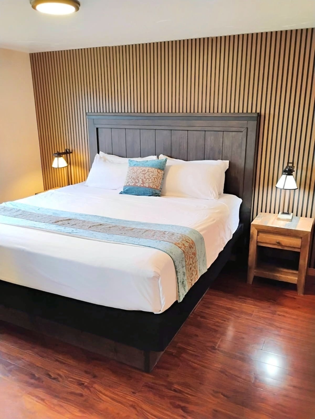 Cozy Queen Room at South Bay Inn – Modern Comfort by the Bay Welcome to the Queen Room at South Bay Inn, where comfort meets style! This thoughtfully designed space has everything you need for a relaxing getaway. Featuring a kitchenette, tiled showers with rainfall showerheads, and an ultra-cozy queen bed, you may never want to leave. Step outside to take in the beautiful Bay views, enjoy a drink in the fresh air, or challenge friends to a game of cornhole or other yard games.