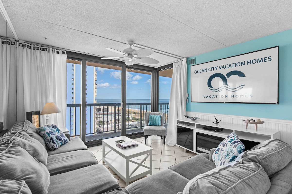 Launch your fabulous beach getaway at amenity-rich Sunset Cove at Sea Watch, part of an oceanfront condo complex offering 3 pools, complimentary movie theater, game room, gym, and much more. Enjoy spectacular ocean and bay views from 2 balconies, smart TVs in every bedroom and living room with provided satellite programming, fully equipped kitchen, comfortable living and bedroom spaces–and that’s just the beginning as your group has a blast at the beach and all of Ocean City’s fun attractions.