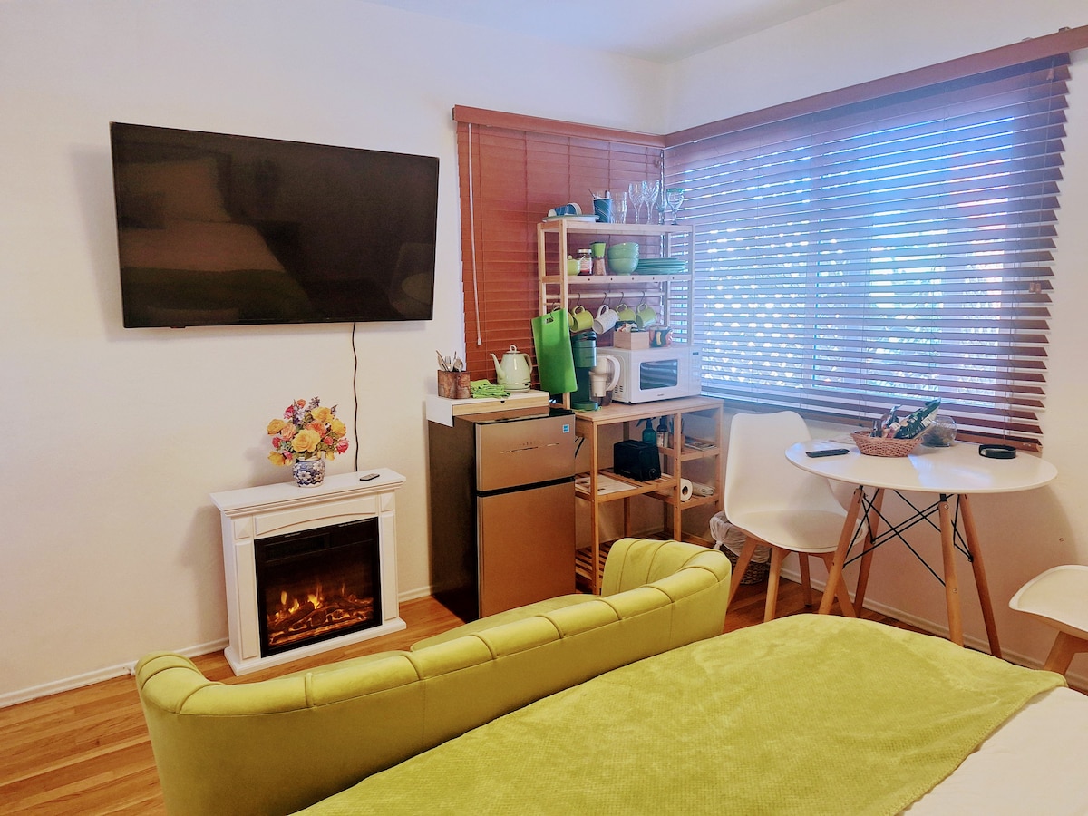 Includes a work/eating area, a comfy queen-size bed & (recently added) memory foam topper, a full bathroom, a kitchenette, vinyl wood flooring, and ample lighting. Includes a private entrance from the side of the property with street parking. A short 8-minute walk to over 20 restaurants and tons of stores, including Baron's market. Just two blocks from the Santa Venita station, which takes you directly to Downtown San Diego.