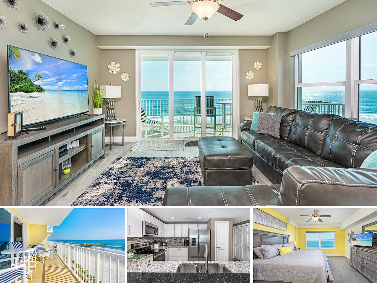 代托纳海滩顶层公寓。海滨阳台+游泳池
