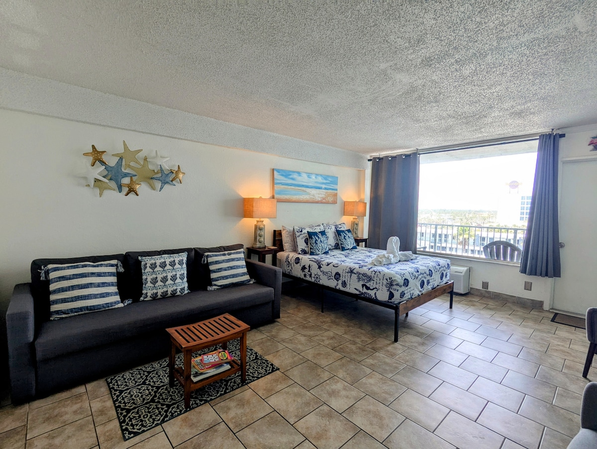 Escape to our luxurious, newly remodeled and all new furnished 1BR condo located on the 13th floor of the Ocean Walk Resort, offering immediate access to Daytona Beach's iconic boardwalk and beach. With breathtaking ocean views from the private balcony, this condo boasts a luxurious design featuring granite countertops, new furniture, refreshing decor, and local artwork. Outdoor heated pools, lazy river, water slide, splash pad, 3 hot tubs all included!