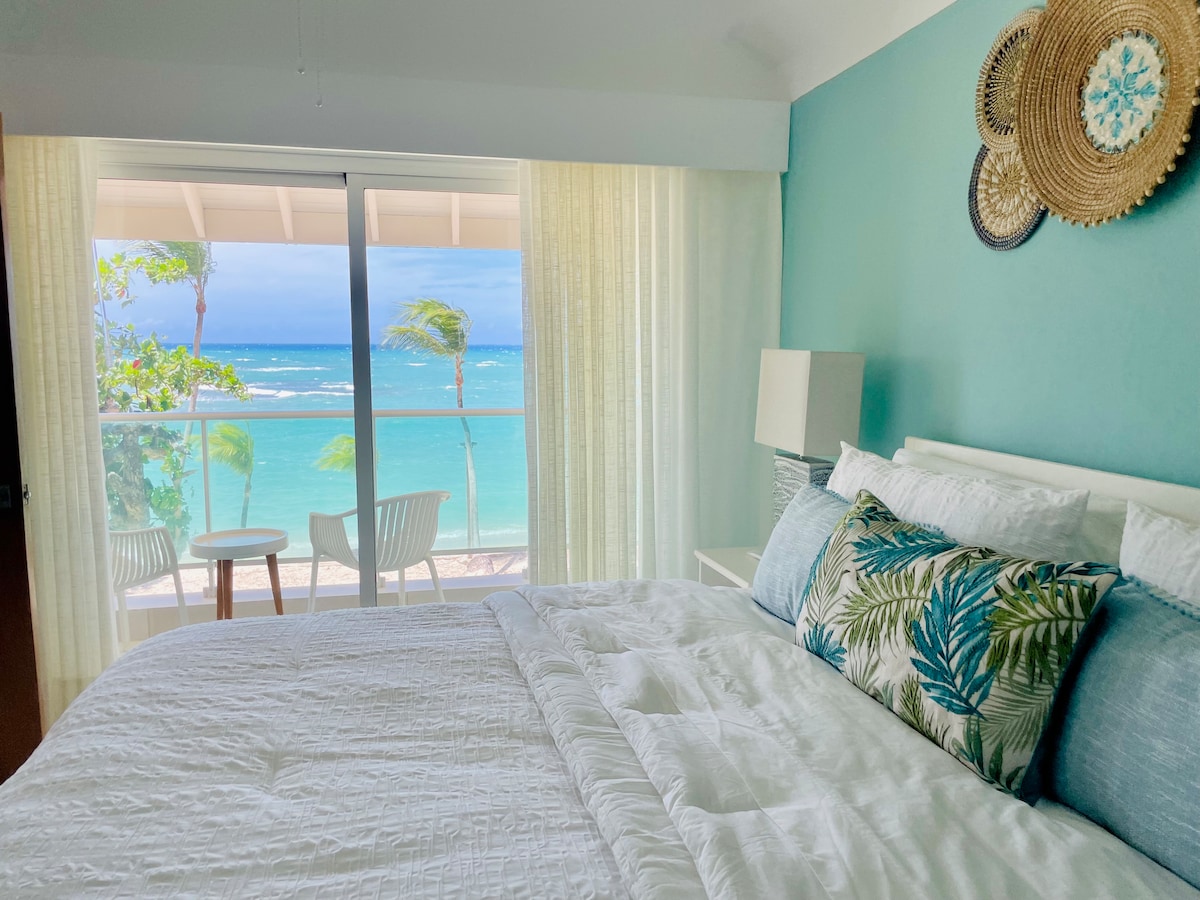 Escape to this NEW Luxurious and Modern Beachfront Condo on Playa Dorada Puerto Plata, Dominican Republic. All needed to enjoy a pleasant, peaceful and safe stay; with direct access to the beach, the double terrace that leads you to the swimming pool, a gazebo and gym; accessible upscale golf campus, restaurants inside the complex, close to shopping center, the international airport, and many attractions like water park, cable cars, historic center, nightclubs and more.