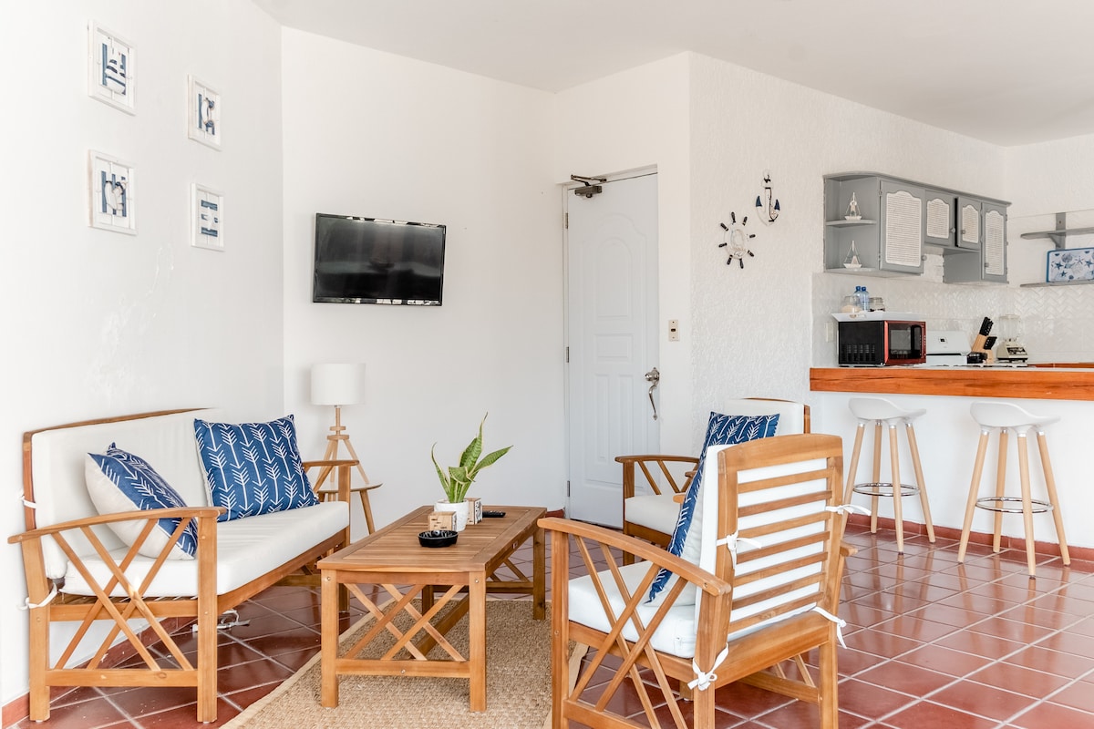Our property is just in front of the main landmark of Puerto Plata, its Parador Fotografico. It is located on Malecon Avenue, right in front of the ocean. Perfect for enjoying a sunset with breathtaking views. It is in a central location that will allow you to walk to the main attractions of the city. Like Independence Park or the San Felipe Fort. So there is no need to rent a car! The apartment has 3 beds each with AC and TV, 2 baths with hot water, a fully-equipped kitchen, and a home office.