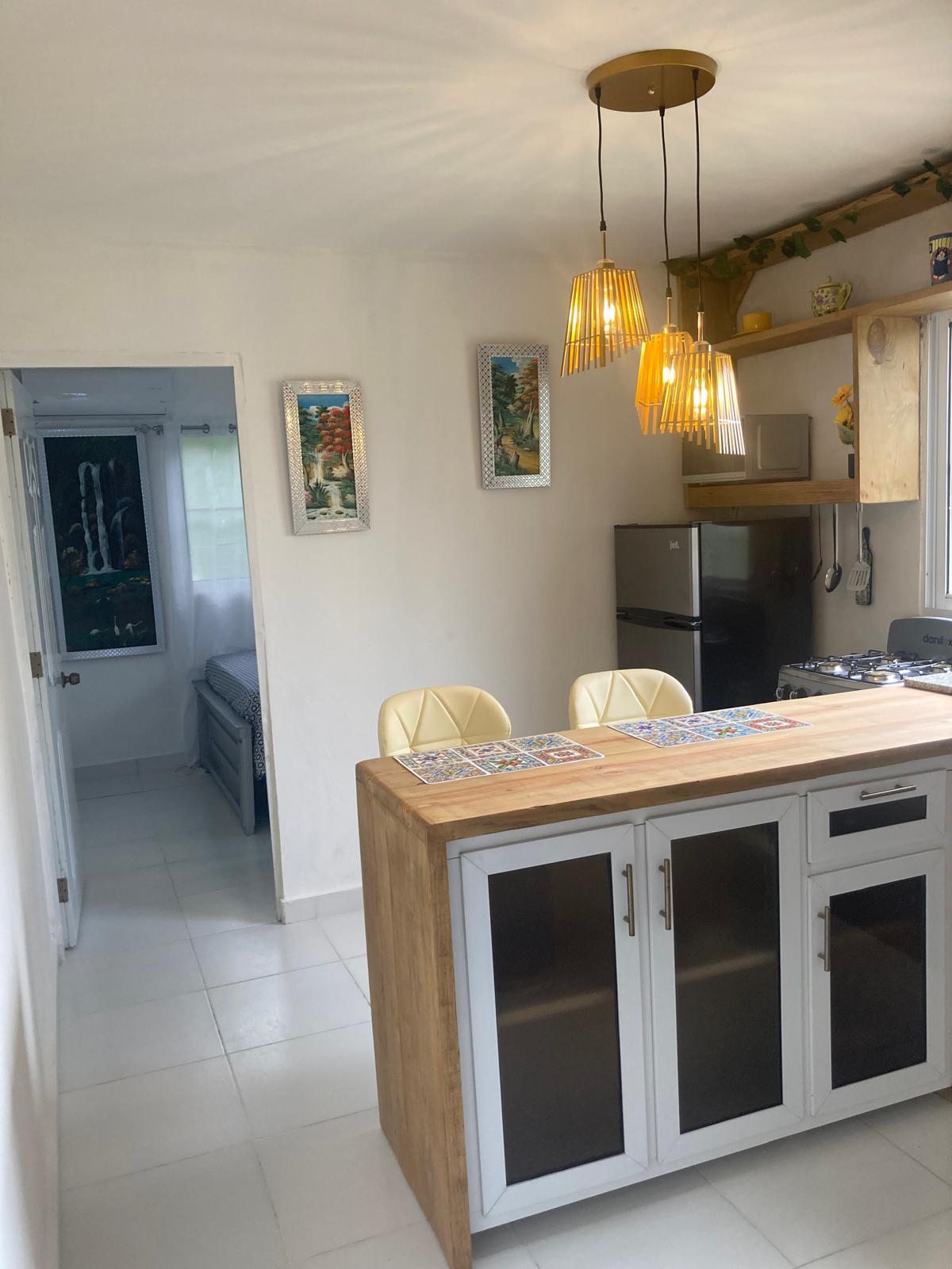 Se trata de un aparta-estudio con cocina, recibidor, un baño y un pequeño mirador que usamos como comedor. Está ubicado cerca de la calle 27 de febrero, una de las más importantes en Puerto Plata, en cuanto a entretenimiento y negocios en General, en Auto: estamos a 5 minutos del Parque Central y la Zona Histórica, a 3 minutos del Malecón, a 15 minutos del Teleférico, a corta distancia de varios restaurantes, discotecas, clínicas, farmacias, Claro, orange, Hospital, supermercados, cerca de todo.