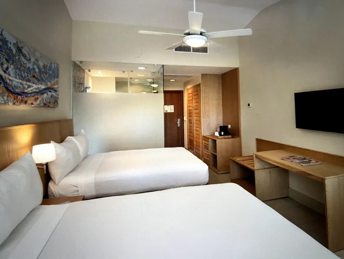 Guests who book with our listing will gain access to the resort and beautiful private beaches. Guests pay a reduced fee of $40/night for a stunning studio room. Once guests arrive at the resort they will pay an all-inclusive fee of $146/day per person which will include all your food, alcohol, and access to the many available activities, casino and live shows. Stunning studio rooms are available for up to 4 guests. The room cost remains the same no mater the number of guests.