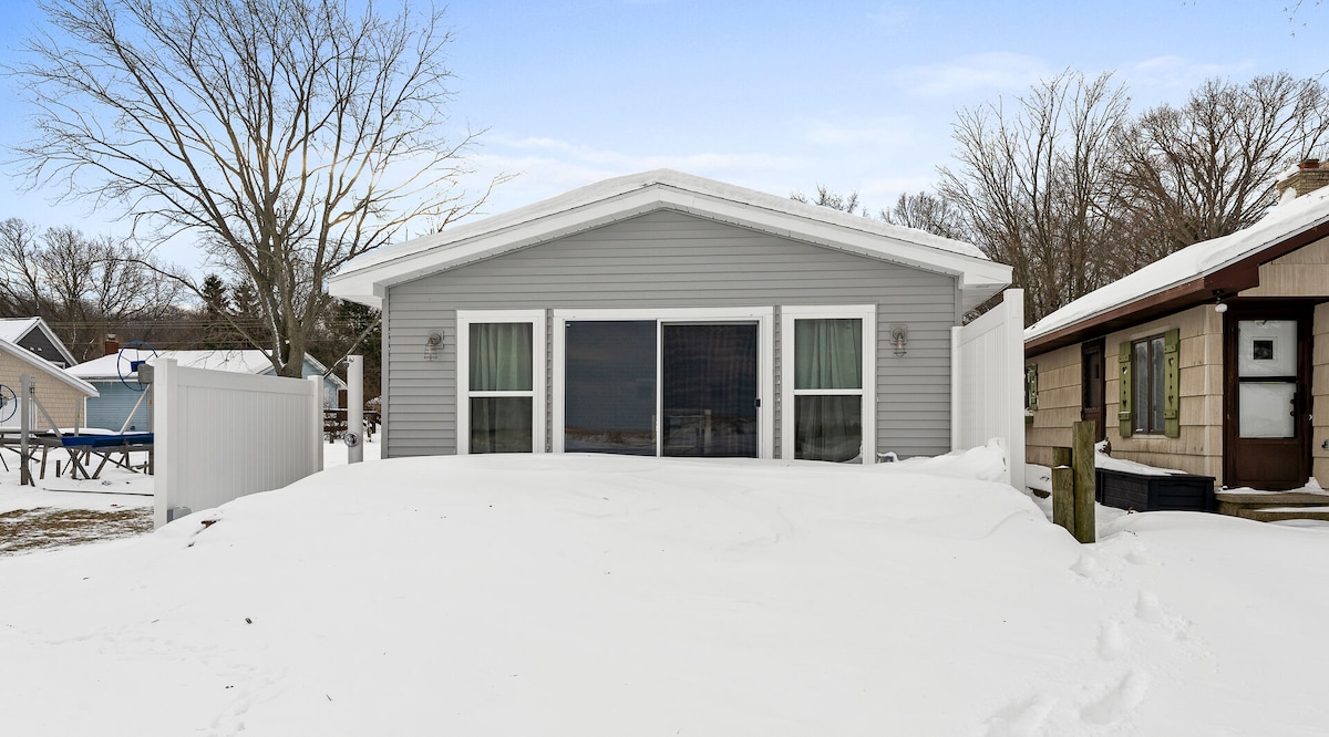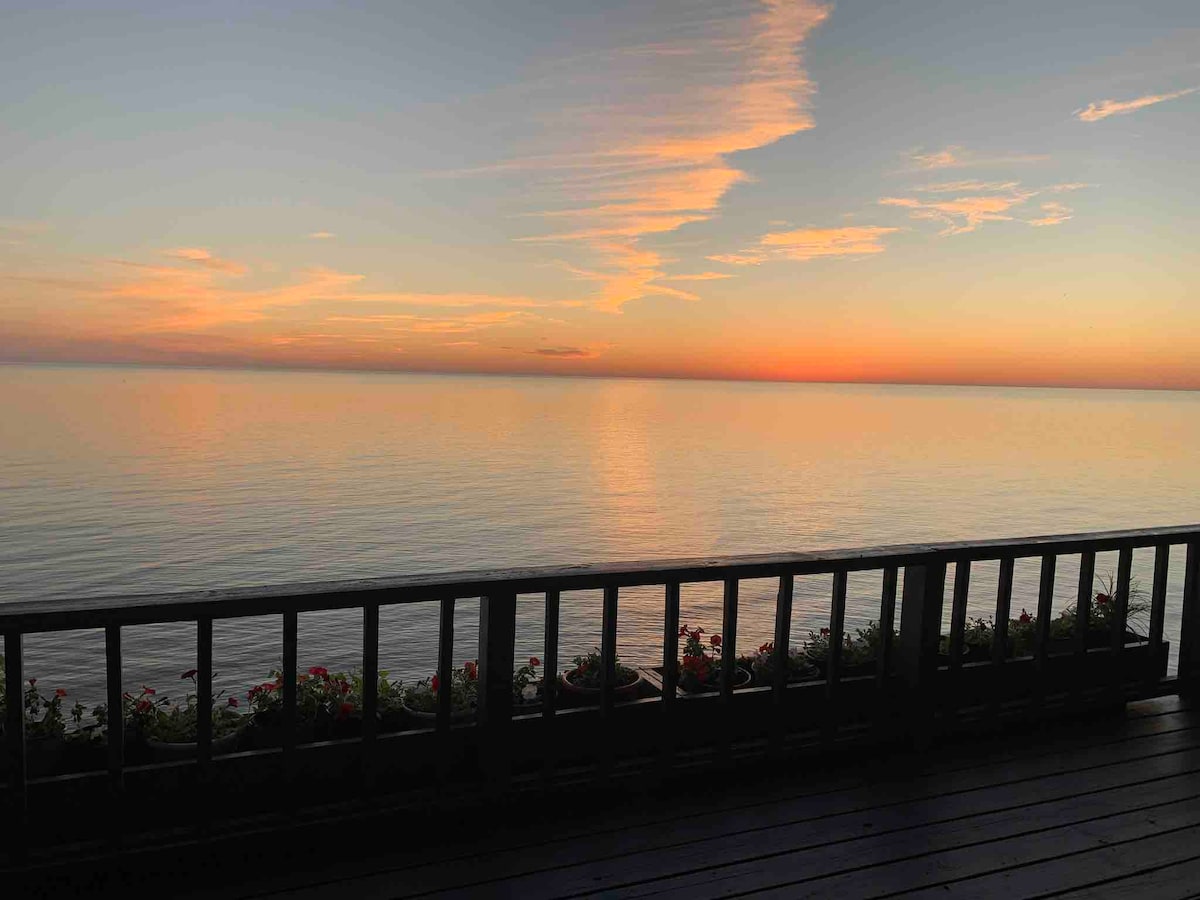 Right on the beach! Watch sunsets from main living space ( kitchen/dinning/living rm). Open the slider hear the waves, 12 steps down with railing and your on the lower deck. Have a seat, watch the kids swim. Settle in, plant your beach gear on your private gated deck. 10 steps down with railing, your there, feet on the beach. One flight of steps to the main level where everything happens. 20 min south of Silver Lake, 1 hr north of Grand Rapids. Keyless keypad for self checkin.
