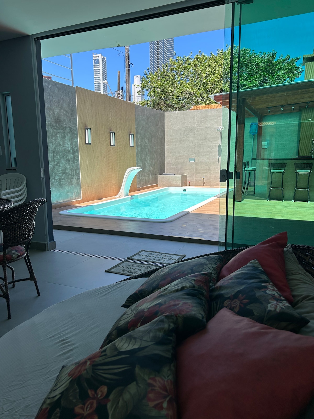 Cobertura recém reformada. Totalmente equipada e climatizada. Vista Mar, lago e BR 101. Andar superior com uma ampla área contendo cozinha equipada, churrasqueira a carvão, área de refeição, sala com TV, lavado e lavanderia. Andar inferior contendo 3 quartos, sendo 1 suíte, 1 Demi-suíte e um quarto. Todos contendo cama de casal e climatizado. Uma sala com TV e uma área de descanso ou leitura. Possui uma vaga de garagem. NÃO ACEITA PETS, não possui rede de proteção.