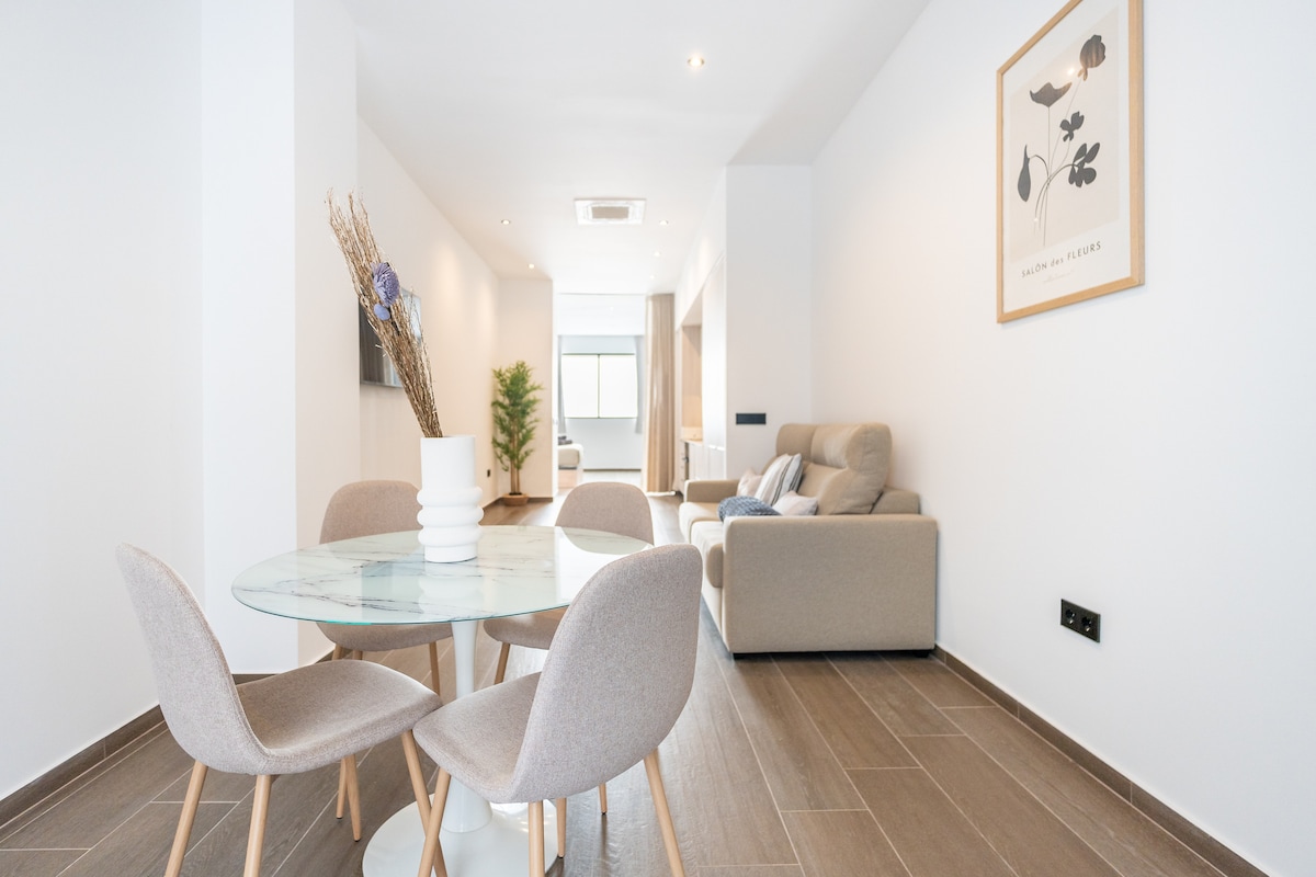 Relax,confort y magnífico espacio extra con dos terrazas en nuestra vivienda urbana moderna,reformada de diseño abierto para disfrutar.Tiene dos dormitorios grandes,cocina moderna con electrodomésticos nuevos;barra americana abierta al salón/comedor,baño de bañera con ducha y terrazas exteriores. Ubicación próxima entre la ciudad y la playa;a 5 'de El Corte Inglés,CC Aqua, paradas de bus,a10' de Metro Ayora,a 20' de la Marina Real, a10' de Oceanogràfic, Ciudad de las Ciencias y Jardín del Turia.
