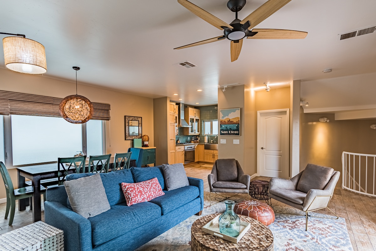 This property is professionally managed by Oceanside Beach Rental. Unwind at the Pelican Villa in Oceanside, CA. Perfect for romantic getaways or family vacations alike, this 3-bedroom, 3-bathroom home features stunning ocean views, a spacious living area, and a fully equipped kitchen. Enjoy sunrises from the private patio or stroll along the boardwalk into downtown. Ideal for families or couples, this serene retreat comfortably accommodates up to 8 guests. Book your special getaway today!